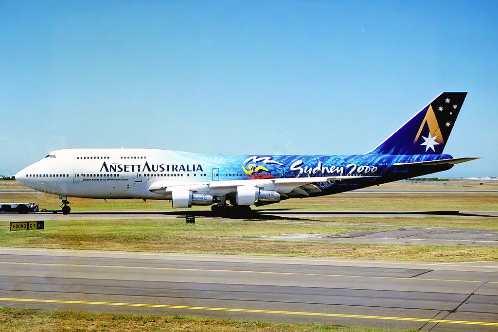 Ansett Australia’s Boeing 747-312 (VH-INJ) featuring a magnificent special livery of Sydney 2000 OlympicsThe small line at the bottom of Ansett Australia should be [Official Airline of the 2000 Olympic Games].