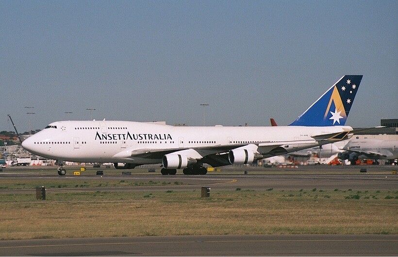 Standard livery of Ansett Australia’s Boeing 747-412 before its shutdown in 2001.