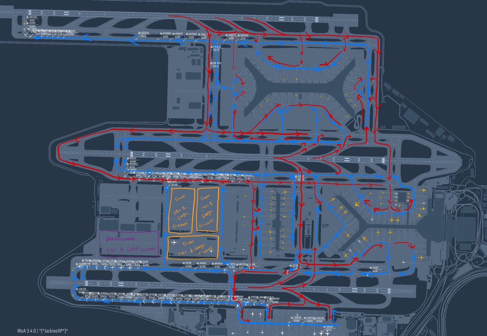 The downside for not making aircraft taxing around the airport will make the gameplay unrealistic and one of the bigger problem is queue for takeoff is crazy long blocking taxiways for landing aircraft that’s going to the extended cargo area especially once you have 400+ contracts with 450 crews, turn around will be a nightmare since there’s so much aircraft that gets pushed back