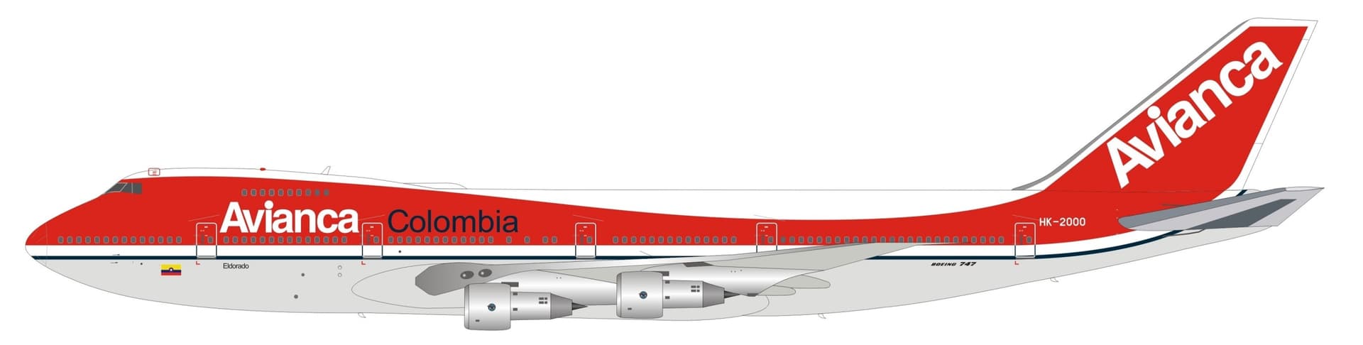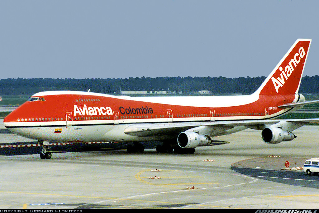 Avianca 1970s/1980s colorway livery on an Boeing 747-100.