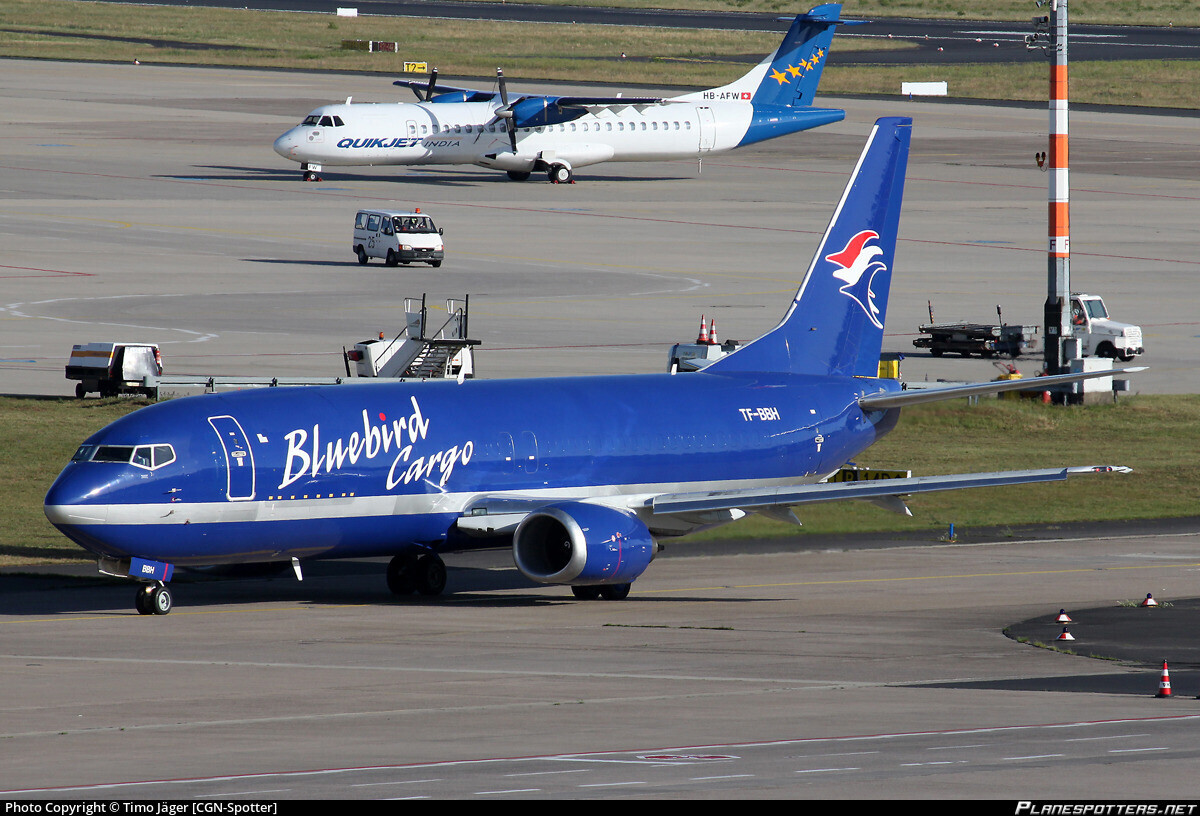 Bluebird Cargo livery colorway on a Boeing 737-400F.