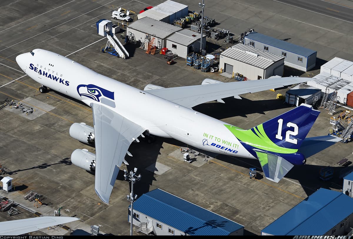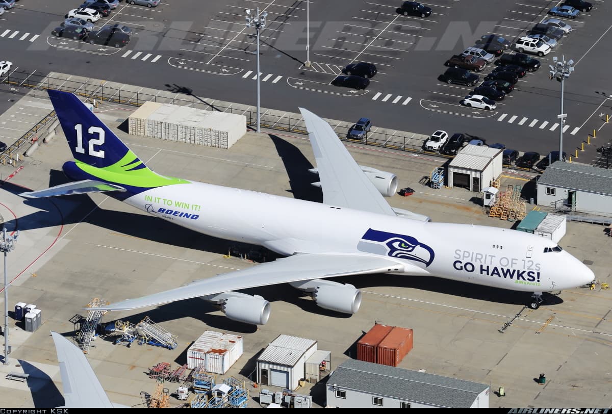 Support for Seattle Seahawks ahead of their Super Bowl XLVIII on the Boeing 747-8F.
