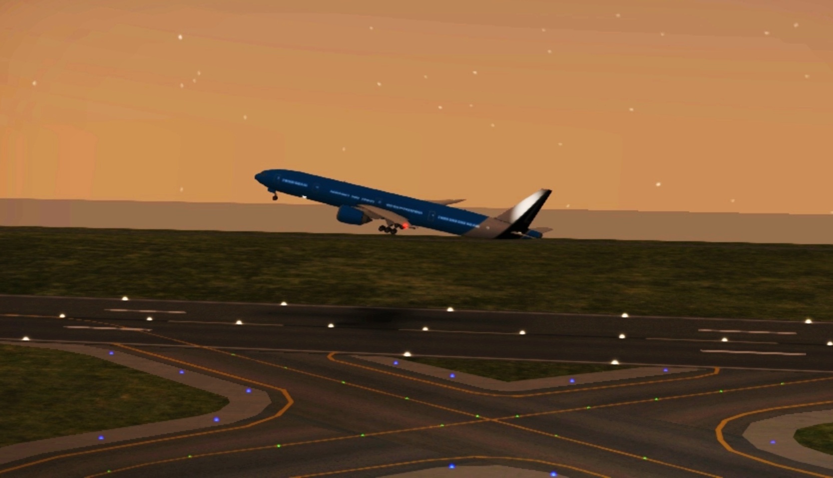 A B777 from connection partner @SomeGuy98345 starts into the night home to IAD