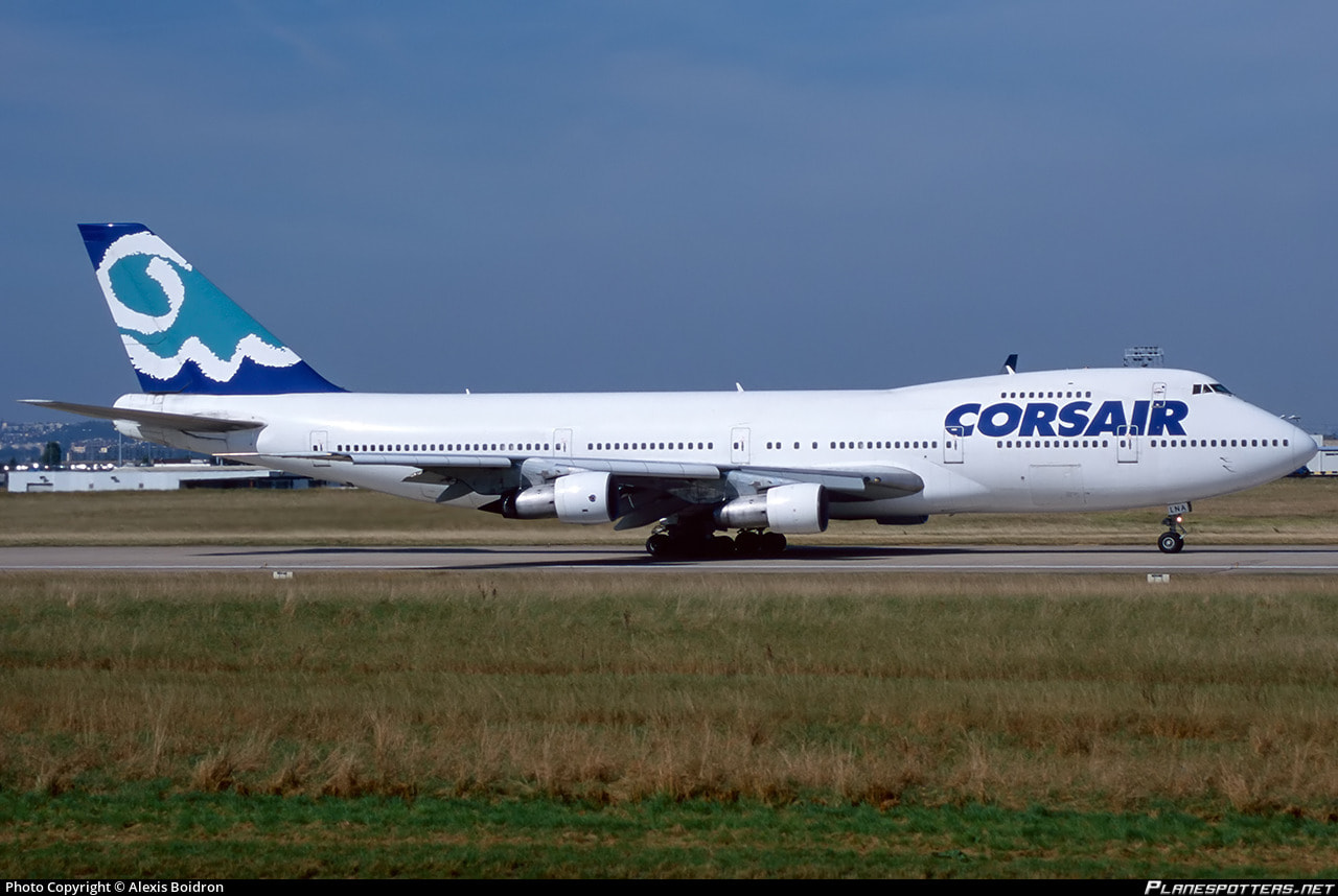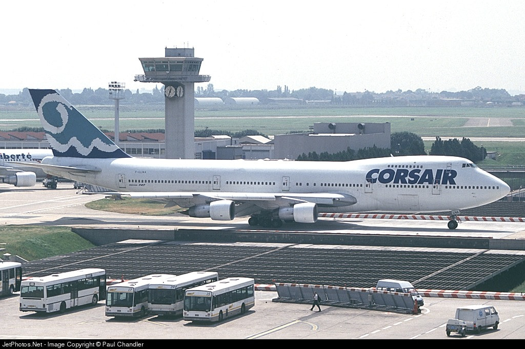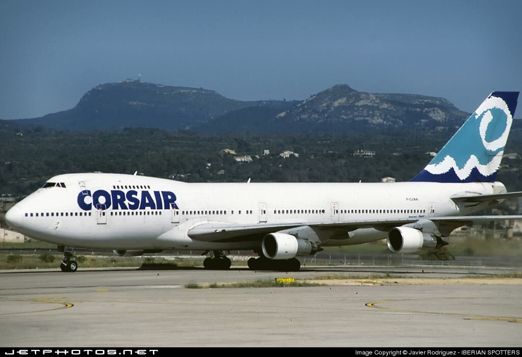 Corsair operated 5 Boeing 747-200s, with this aircraft entering service in December 1992, registered as F-GLNA, which was previously operated by KLM, Garuda Indonesia & Air Siam and operated to destinations in Europe (Barcelona, Hannover, Palma de Mallorca, Stockholm, and Manchester), North America (Boston and Calgary), and the Caribbean (Saint Maarten). Corsair had retired this aircraft in October 2002, and it was scrapped. Corsair had used this livery across their fleet, which included the B747-100, B747-300, B747SP & A330-200.