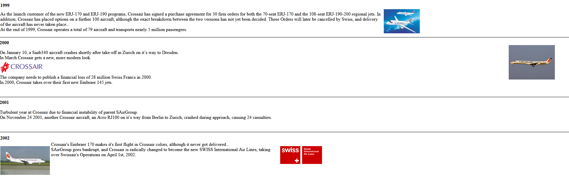 E170 (Embraer 170) (1? painted, none operated as delivery didn’t take place due to Swissair collapse, was due to be launch customer like with E145),