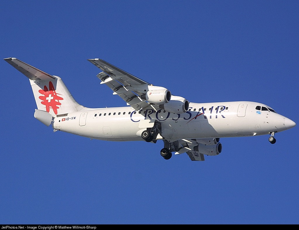 Early 1990s livery (Worn by the 4 RJ85s until 2002/3 when they were painted in Swiss colours),