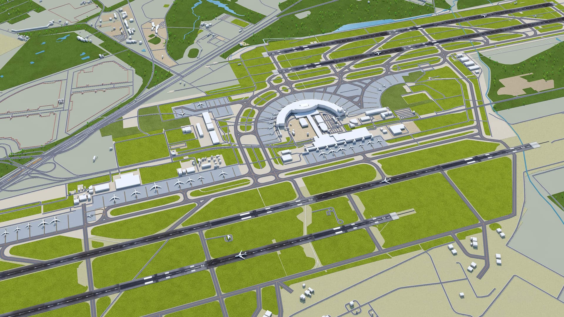 Β· Four Runway Configuration: Features two sets of parallel runways, a complex layout that provides operational flexibility, especially during strong crosswinds.Β· Winter Operations: The most defining feature is its location in a heavy snowfall region. This introduces gameplay challenges like de-icing delays, runway closures for snow removal, and potential reduced visibility, requiring active management.