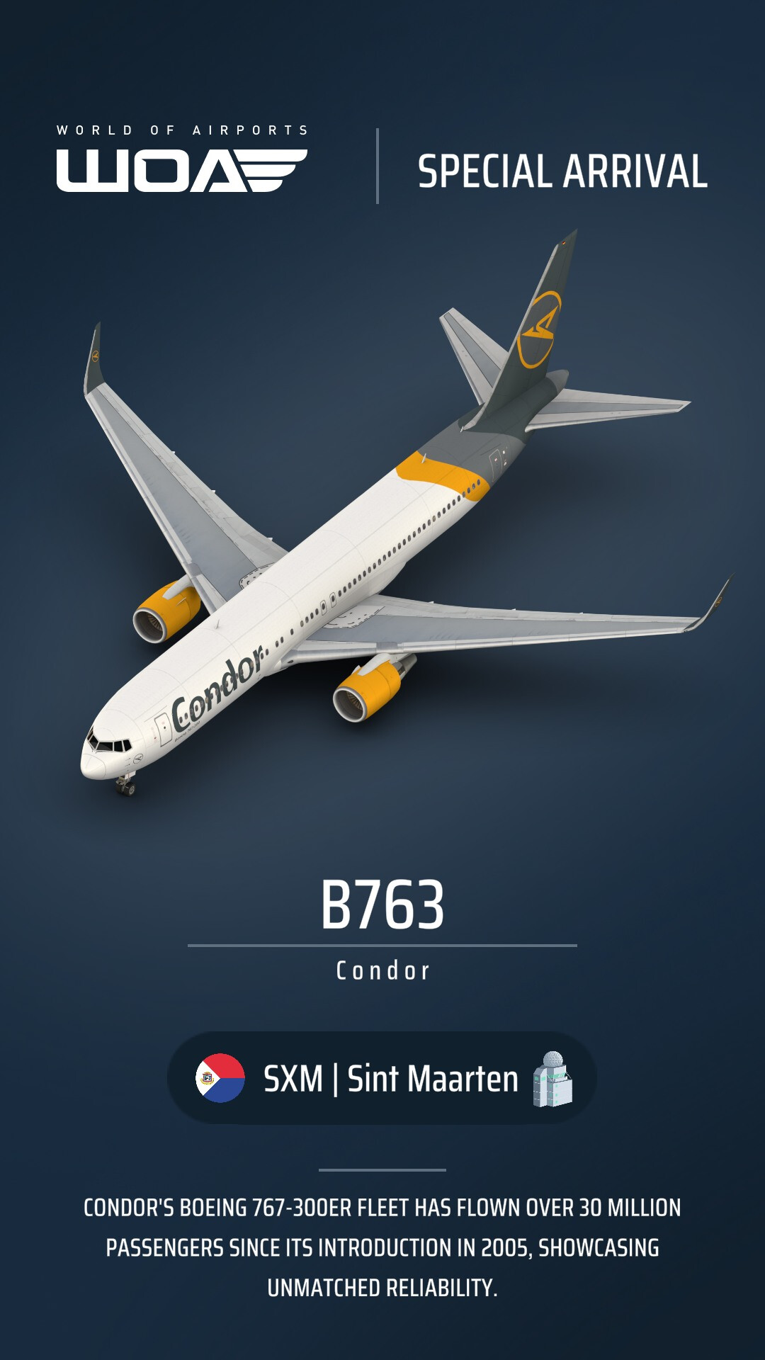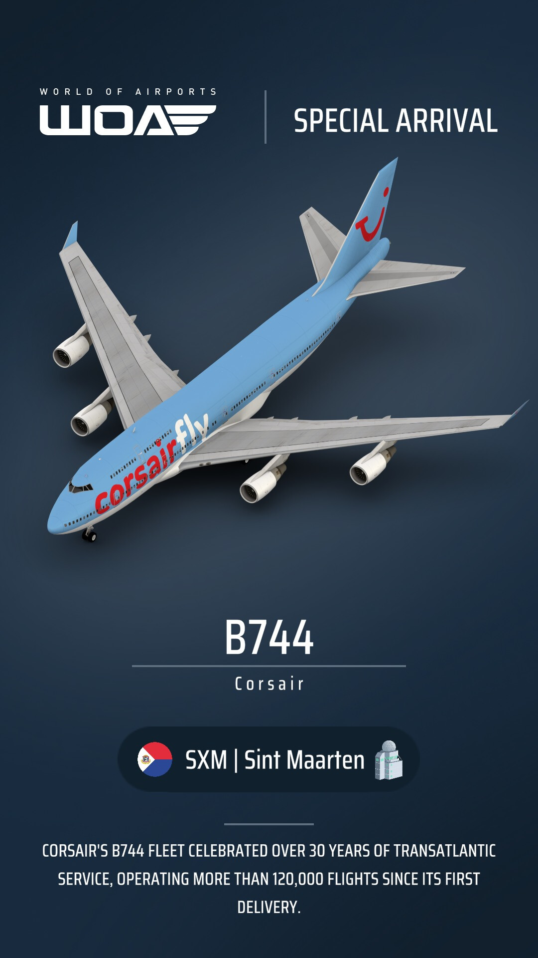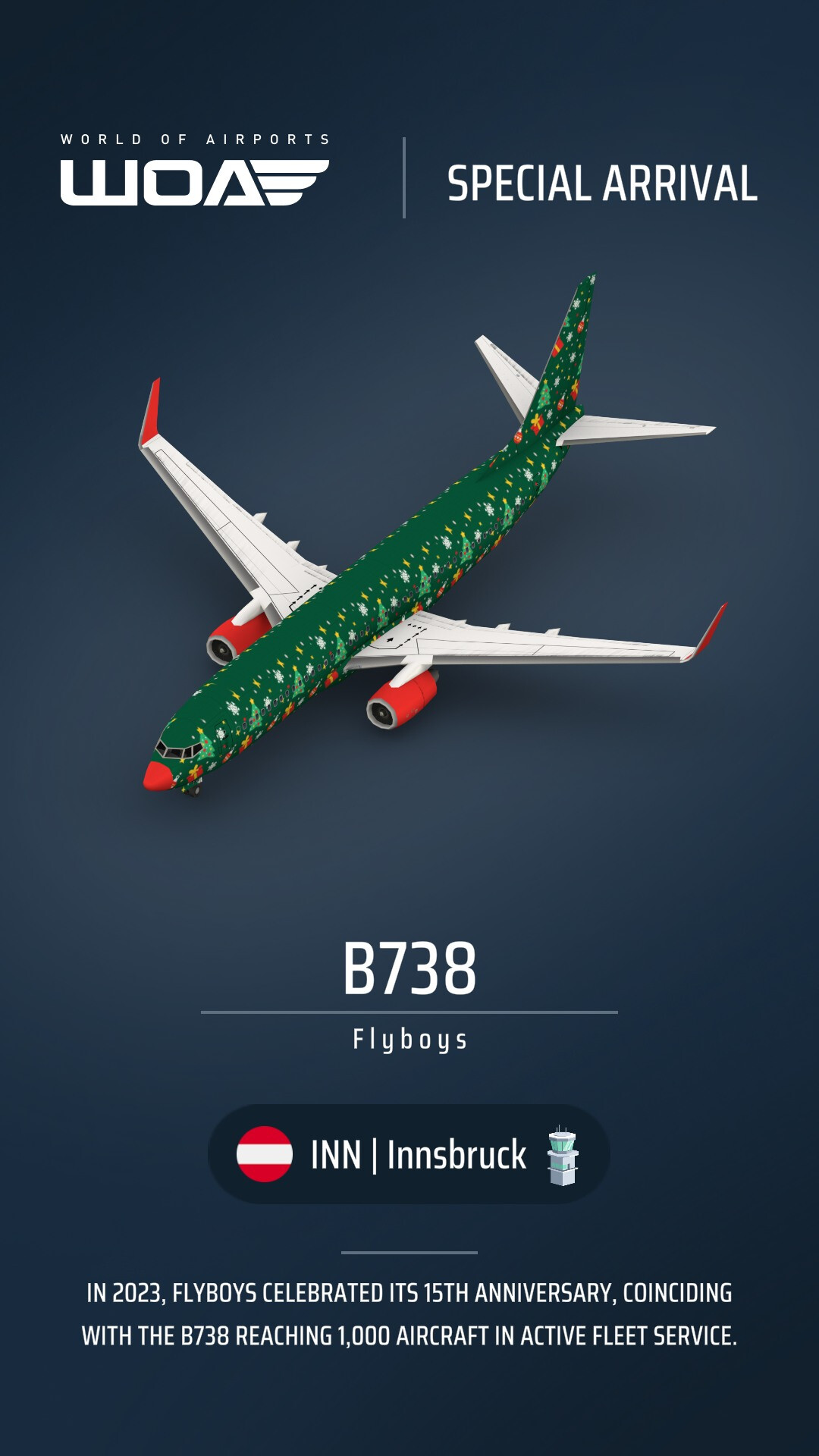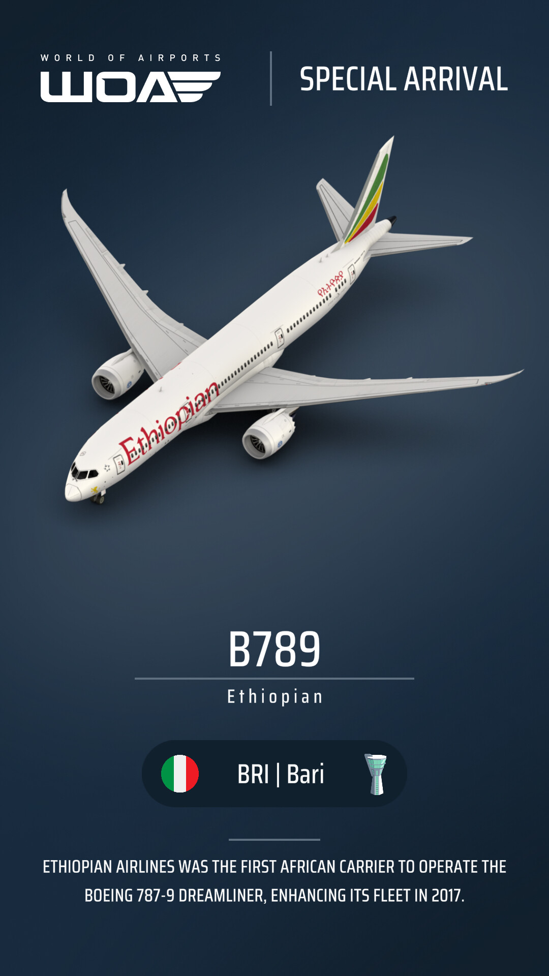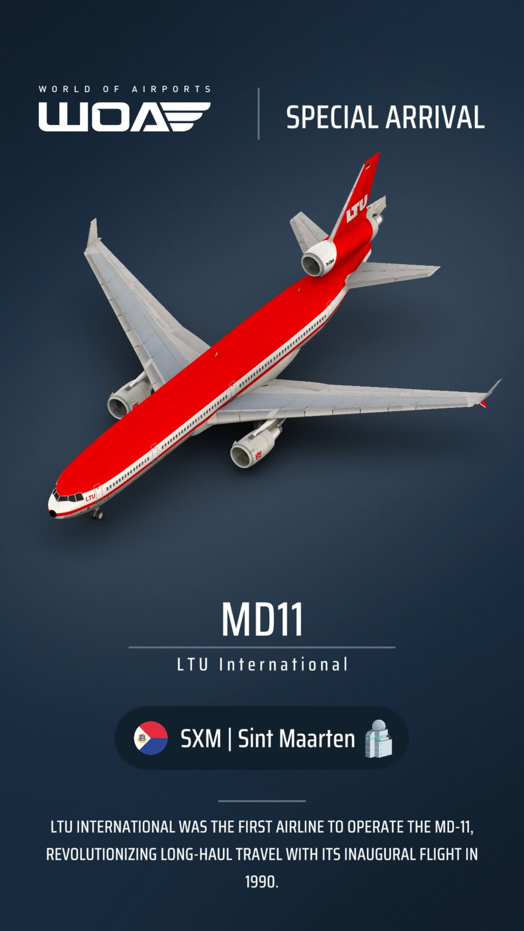 Love this, I’ll be holding onto it till I can rack up a full fleet . Also love the attention to detail, arriving from one of the airlines actual destinations. Thanks devs