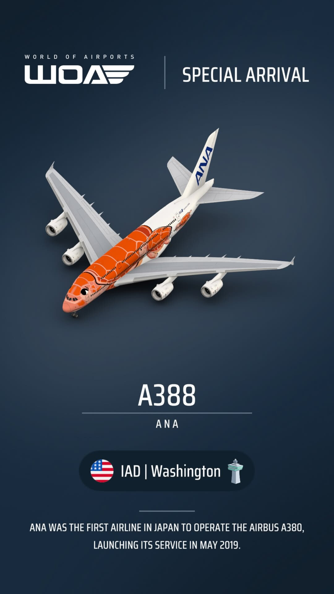 | IAD | CTS | All Nippon Airlines | A380 | Airbus A380-800 | ANA Blue Turtle | Yes | ||