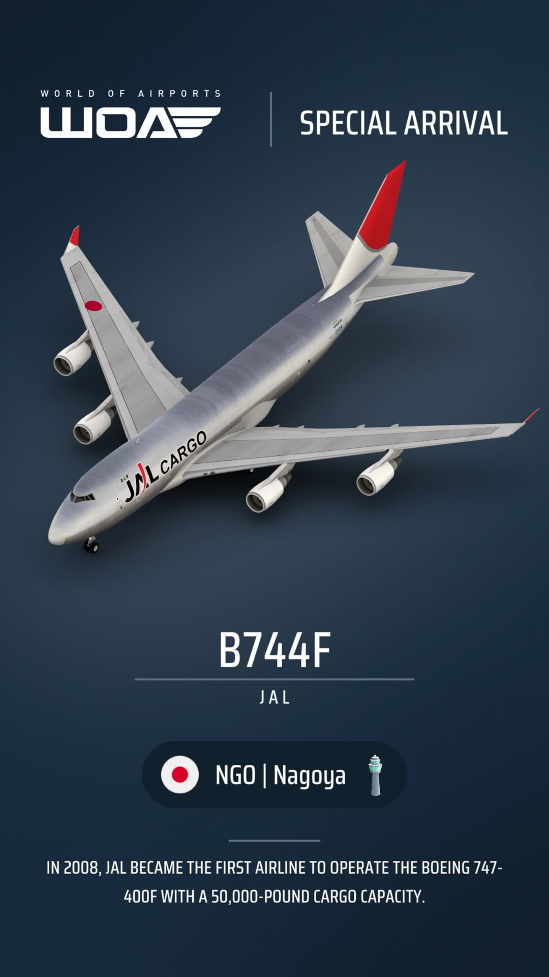 | NGO | HNL | Japan Airlines | B744 | Boeing 747-400 | Chrome livery | Yes | New livery | |