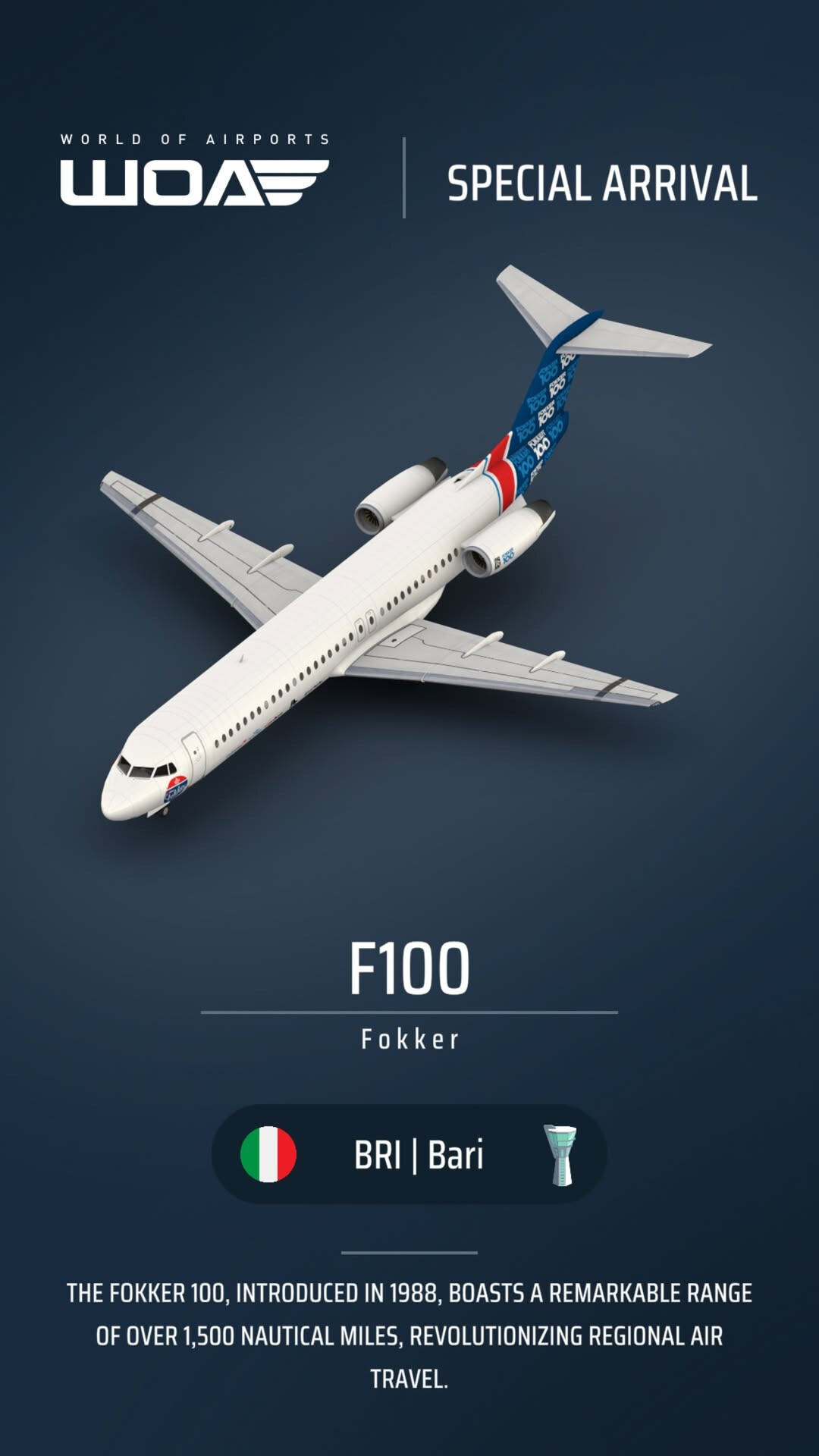 | 27/12/2025 | BRI | AMS | Fokker | F100 | Fokker F100 | Prototype livery | Yes | New livery |