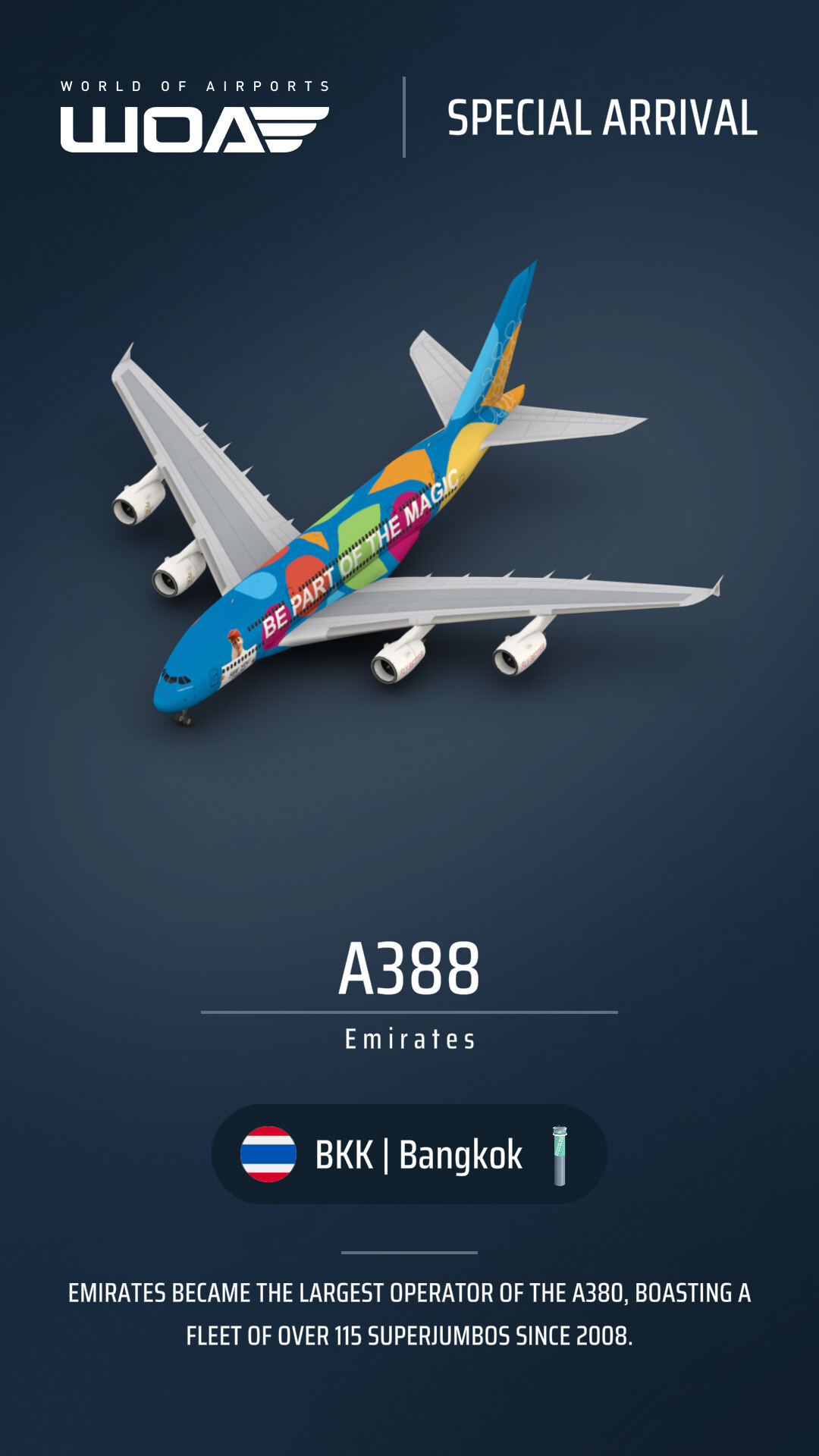 | BKK | DXB | Emirates | A380 | Airbus A380-800 | Dubai livery | Yes | ||