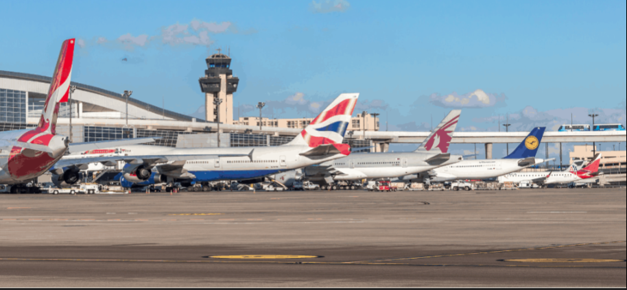 Aero Mexico, Air Canada, Air France, Alaska, American, Avelo, Avianca, Breeze, British Airways, Cathay Pacific, Contour, Delta, Denver Air Connection, Emirates, Eva Air, Fiji Airlines, Finnair, Frontier, Iberia, JAL, JetBlue, Korean Air, Lufthansa, Qantas, Qatar, Royal Jordanian, Southern Airways Express, Spirit Airlines, Sun Country, Turkish Airlines, United Airlines, Viva, Volaris