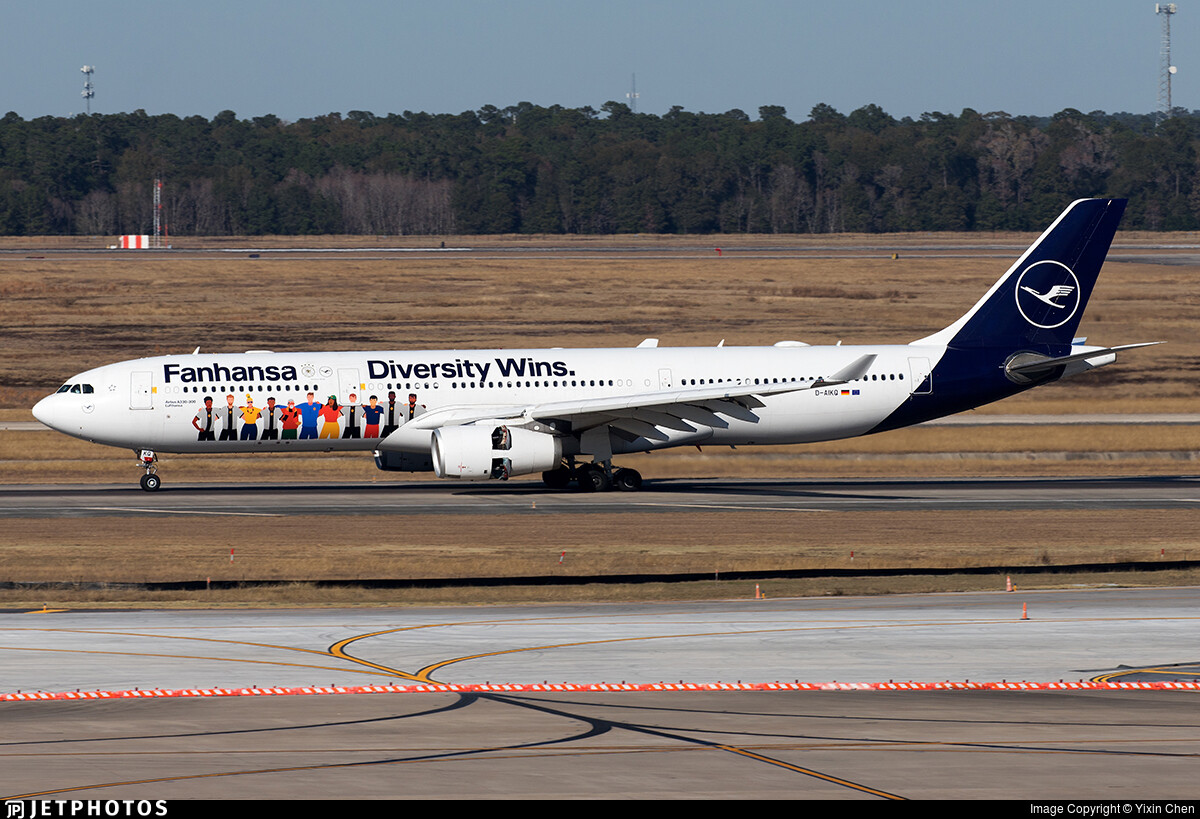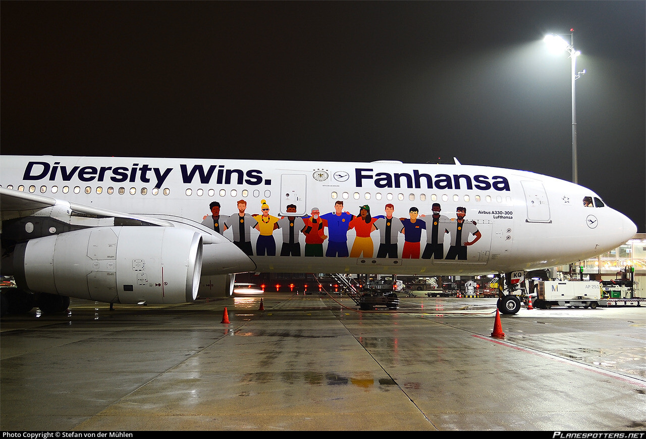 Lufthansa special livery colorway featuring Fanhansa Diversity Wins on a Airbus A330-300.
