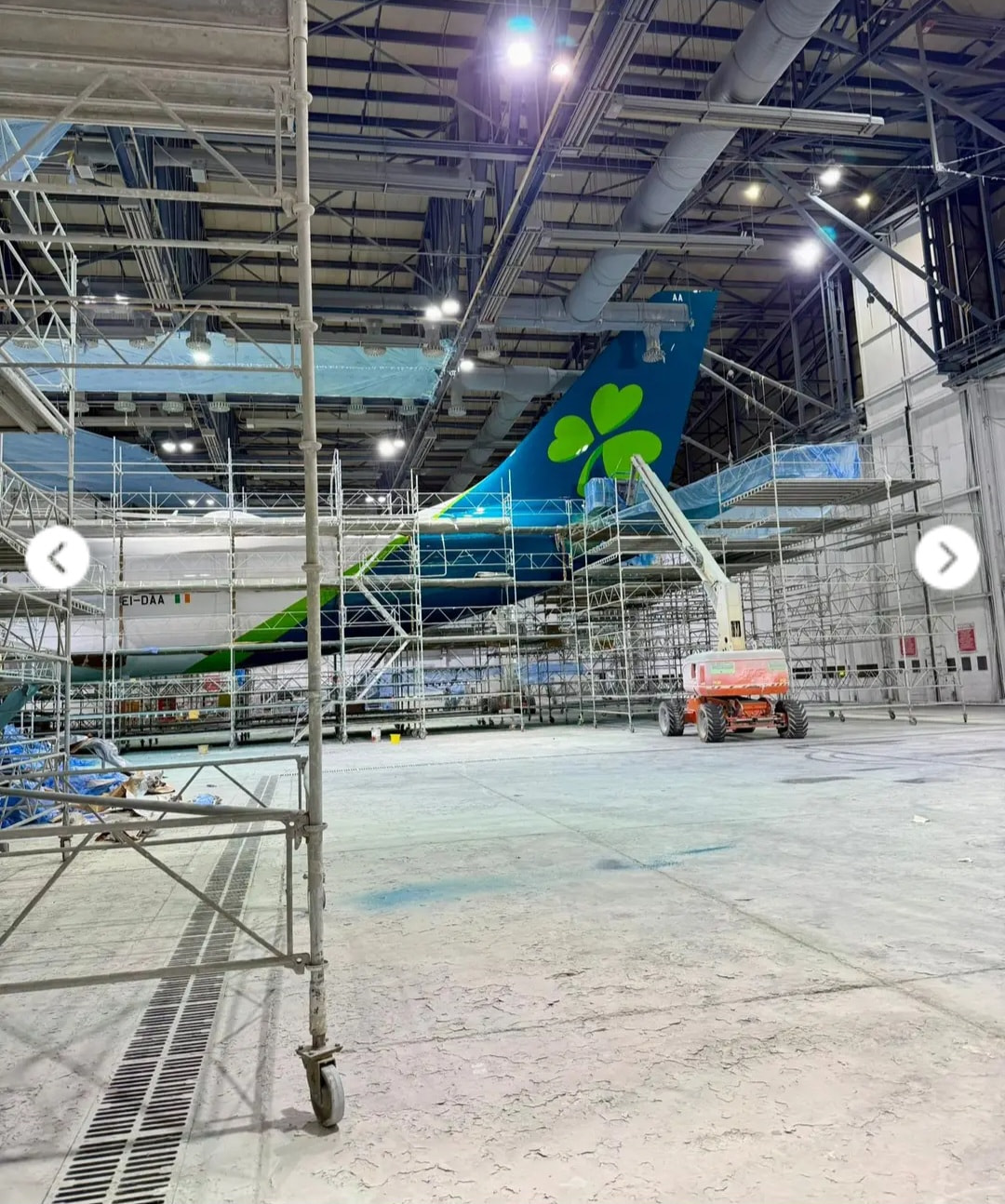 Edit: These are not my images (i took that from a DUB ramp agent on Facebook hence the dots) but this is EI-DAA when it was being repainted at IAC facility in DUB.