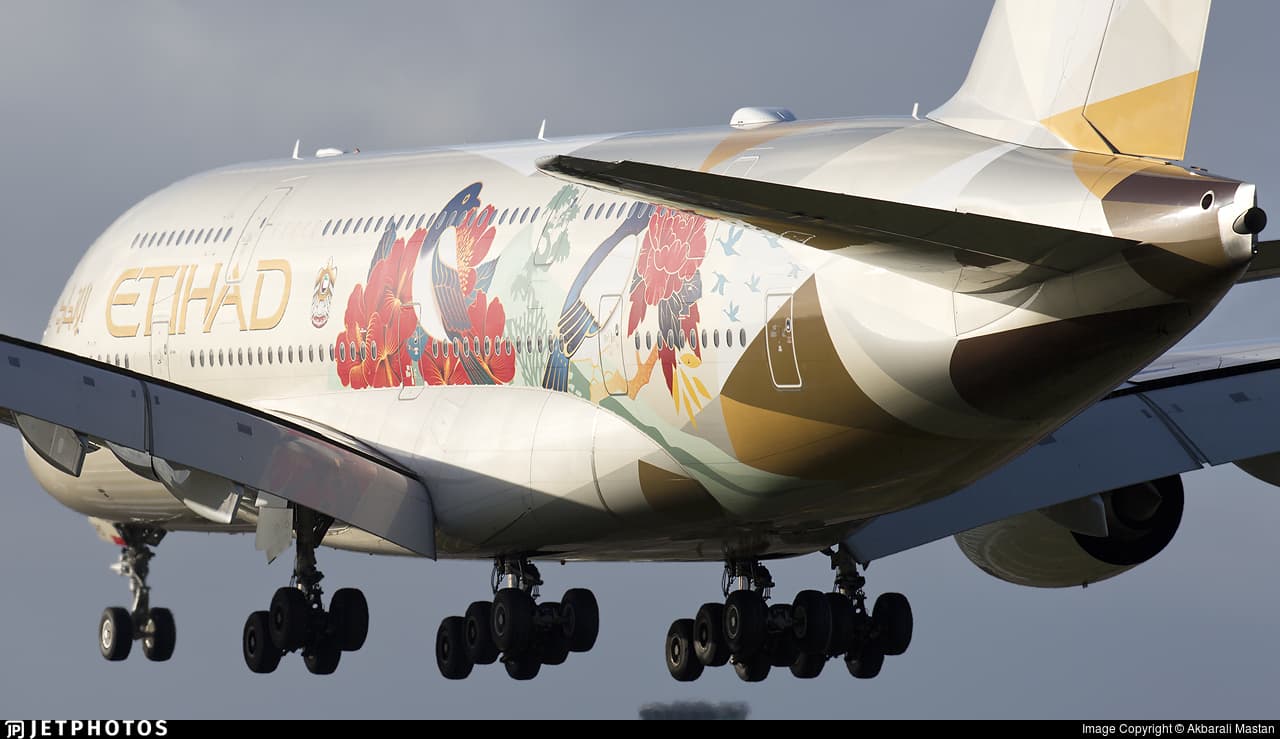 A unique livery for Etihad Airways which include elegant and eye-catching designs. Also lack of special liveries for A388.