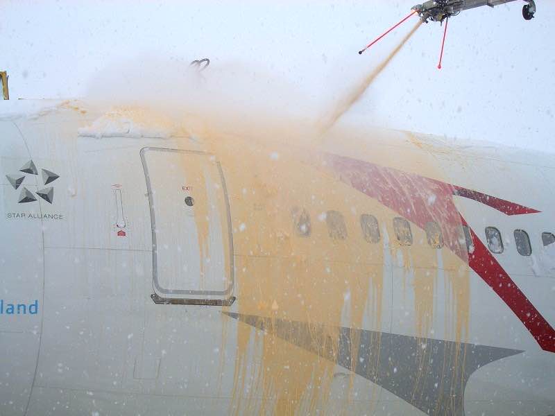 It would be nice to see the automatic process spray an orange color and slowly coat the plane over time in orange, and then if possible show the wings and tail getting covered in green. Some planes that are usually on the smaller side take type 4 along the top of the fuselage as well. In my experience this is anything of the E145/CRJ2 size and below. I have not deiced any turboprops in my 7 years of doing this so they may have a different application process. For the ease of animation its probably easier to coat the whole plane, or just wings and tail in green Type 4. Then on takeoff the type 4 could start to dissolve/fade off the plane as its in the air.