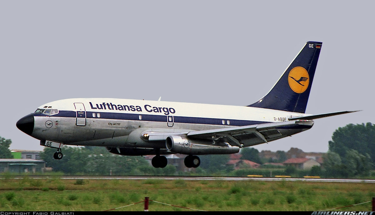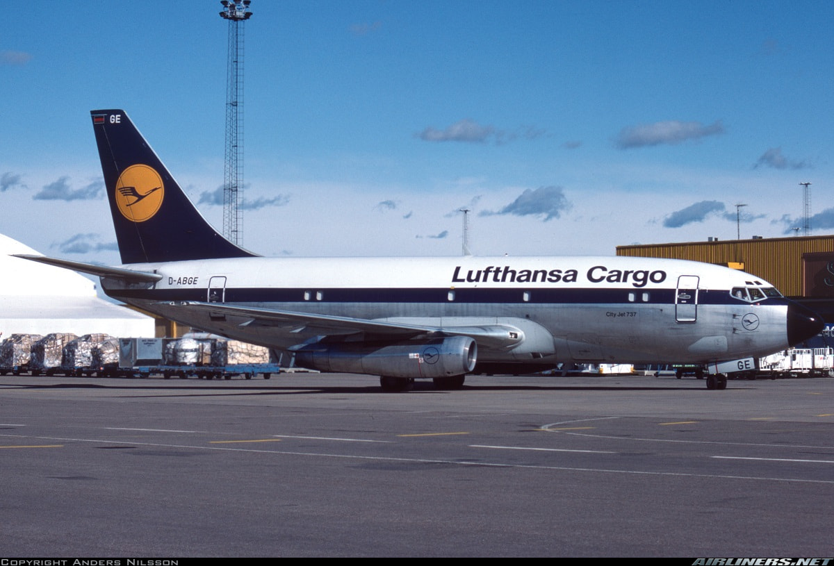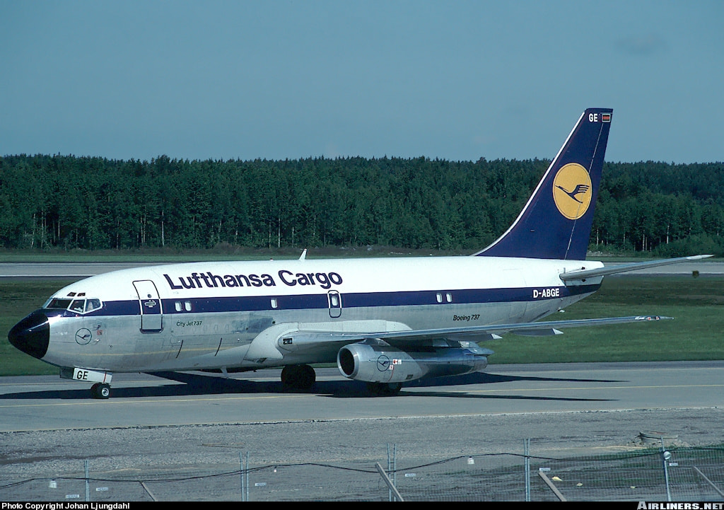 Lufthansa Cargo retro livery colorway in 1965-1989 on a Boeing 737-200C.