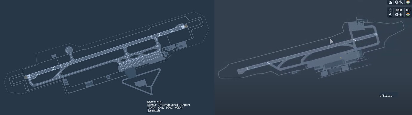 Interesting thing - that porting a real scheme of airport on the left should be quite easier to create than the actual in-game airport scheme on the right. Layout is more basic and really can be met at a lot of airports worldwide.