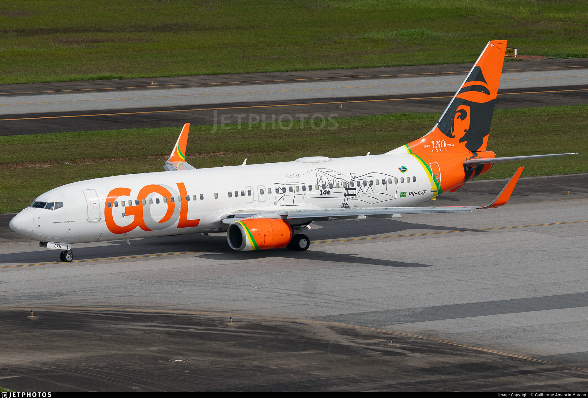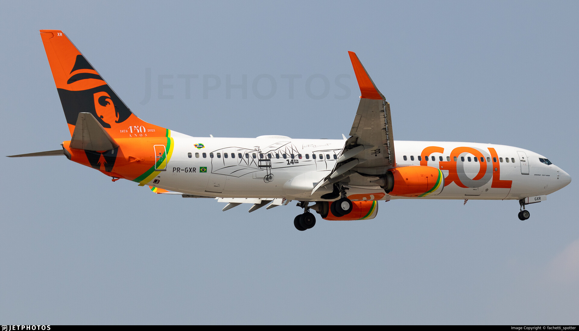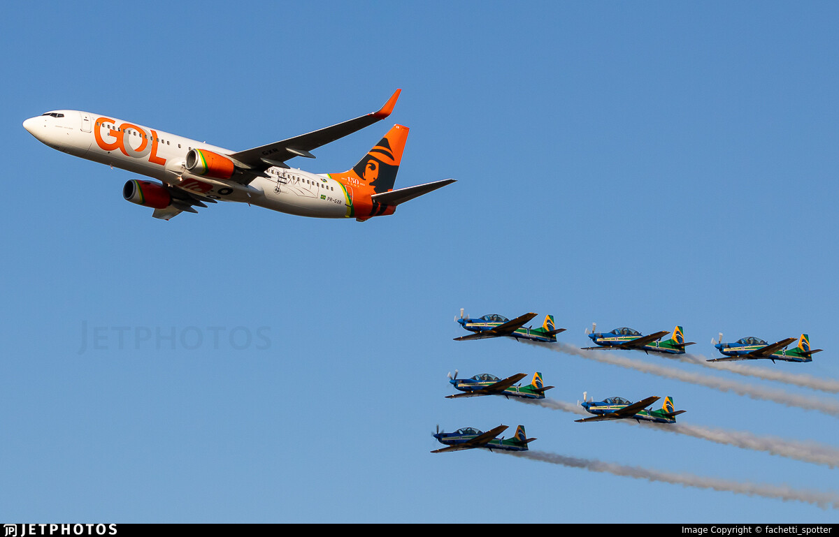 A special livery celebrating the 150th birthday of Santos Dumont, on one of GOL’s 737-800’s