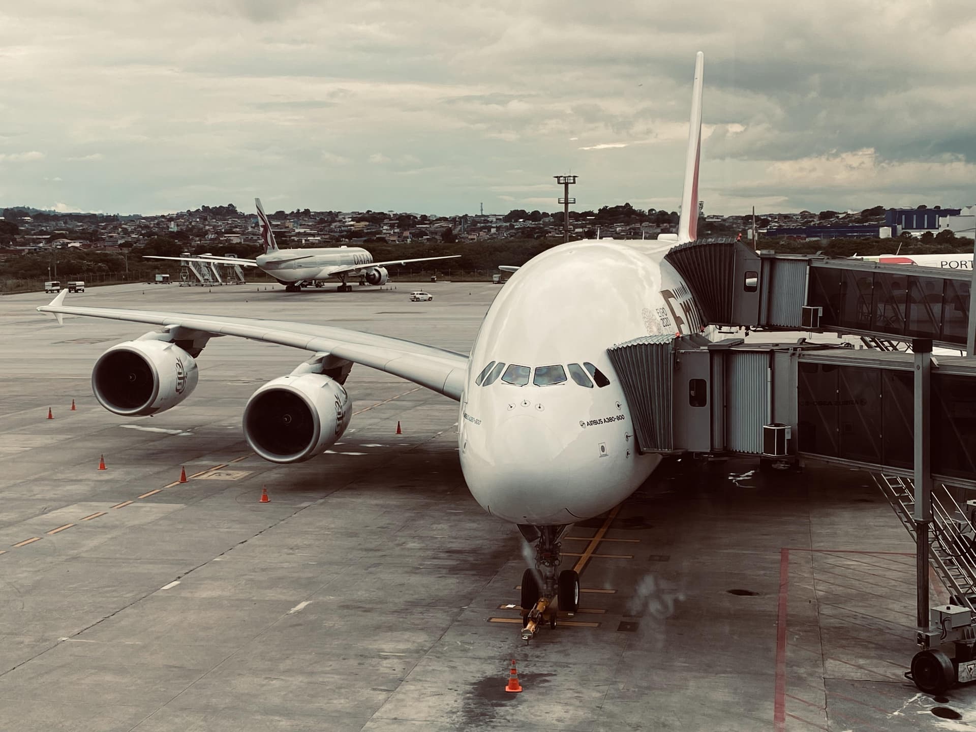 @ritcheuy Doing night-shifts at GRU, 4 A388 parked and a B77W coming by. Even at night they generate a queue for departure (with some more B77W’s this time)