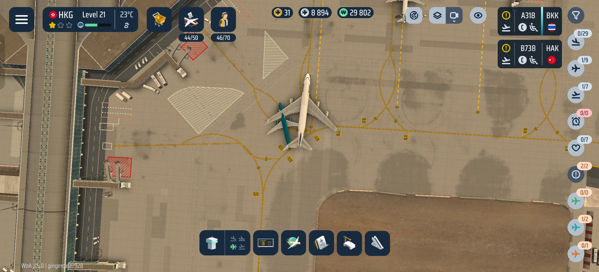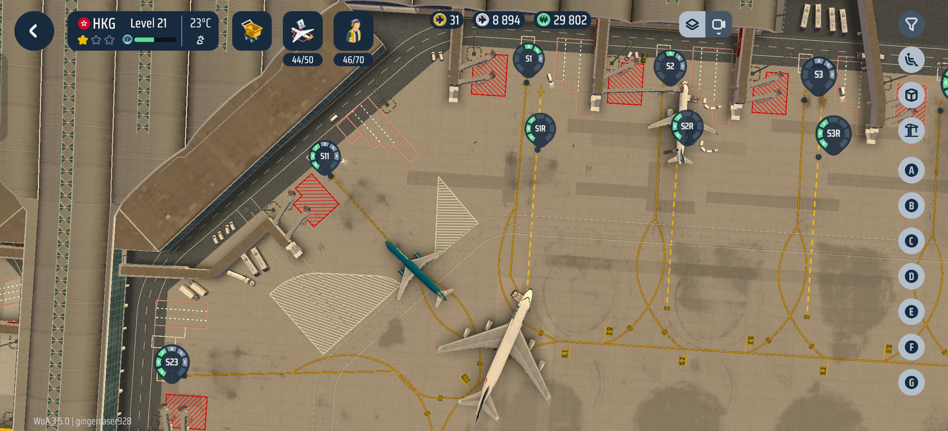Description of the Bug:aircraft movement conflict, a plane pushing back at S1 while another taxi right through it into S11