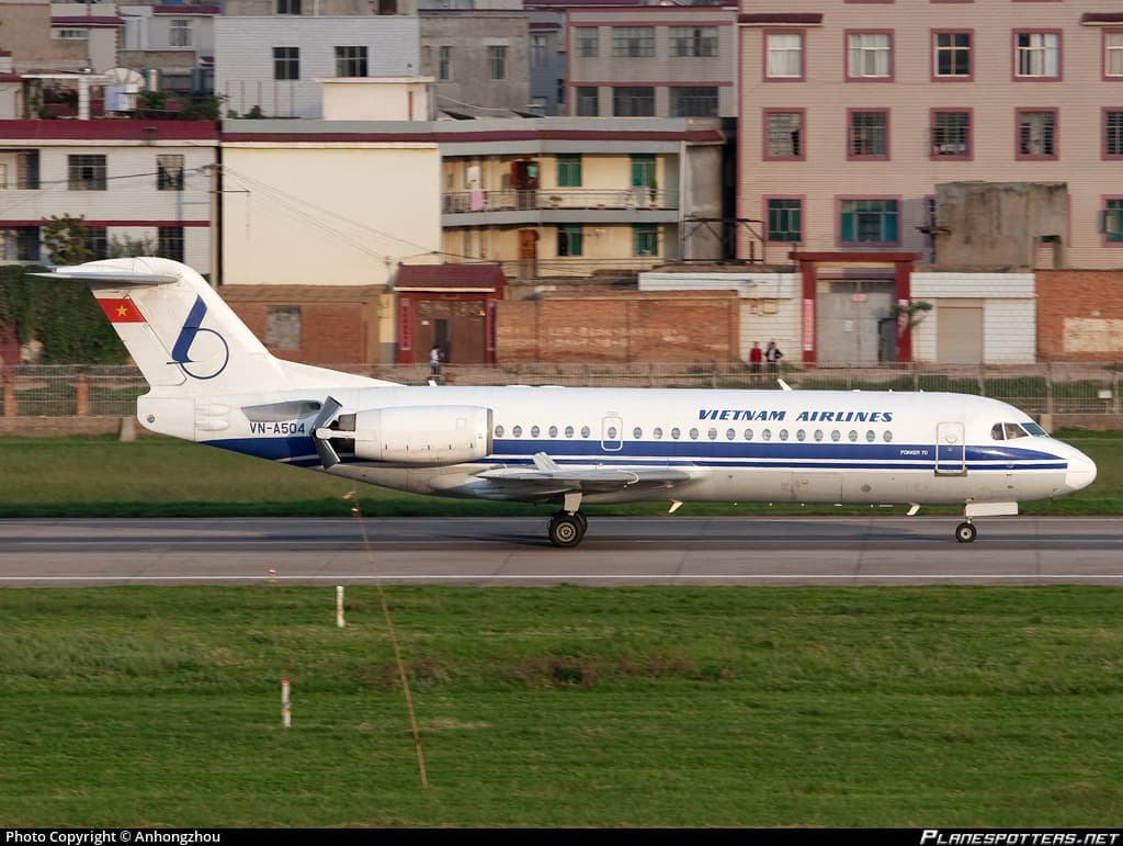According to planespotters.net, Vietnam Airlines was the airline that received the last Fokker to leave the production line (VN-A504) in 1996 before Fokker went bankrupt.Fokker 70 is also one of the few aircraft models that carries both the old and new paint colors of Vietnam Airlines during the period when the airline changed its brand identity.