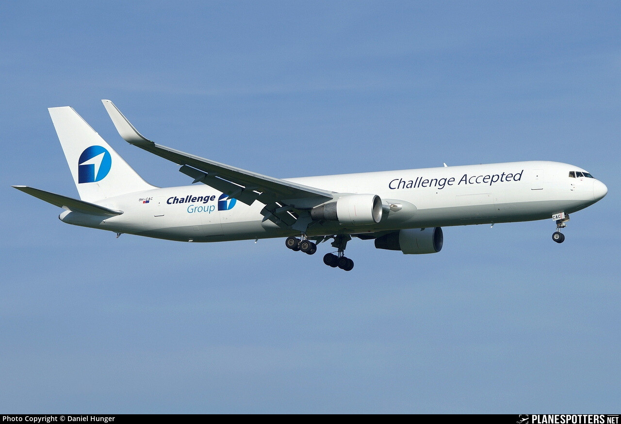 Challenge Airlines cargo livery with mostly white base similar to the B744F. Livery is seen on both the Israeli and Maltese AOCs