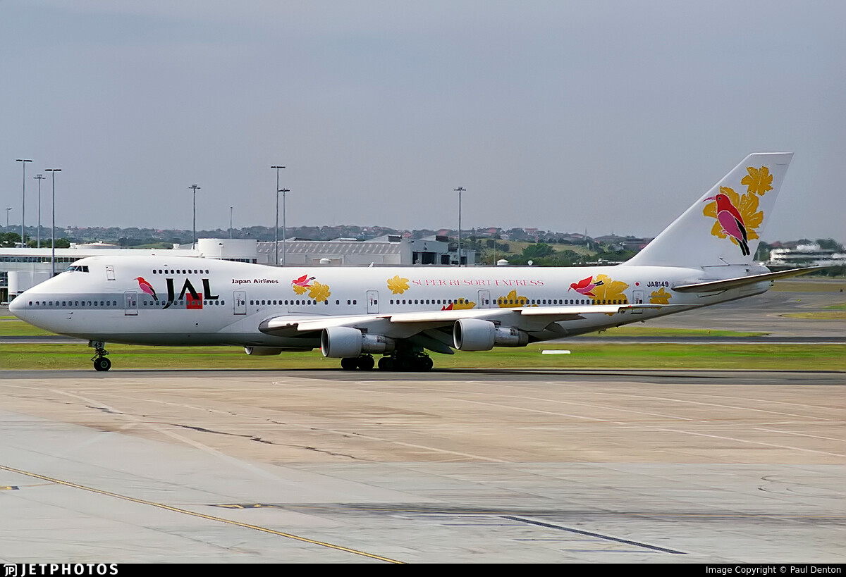 A special Super Resort Express livery worn by one of JAL’s 747-200Bs