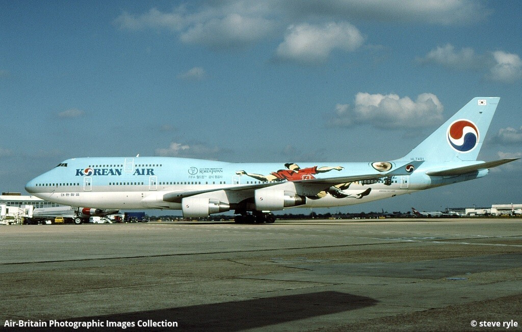 Korean Air special livery featuring promotion for the 2002 FIFA World Cup in South Korea & Japan on a Boeing 747-400.