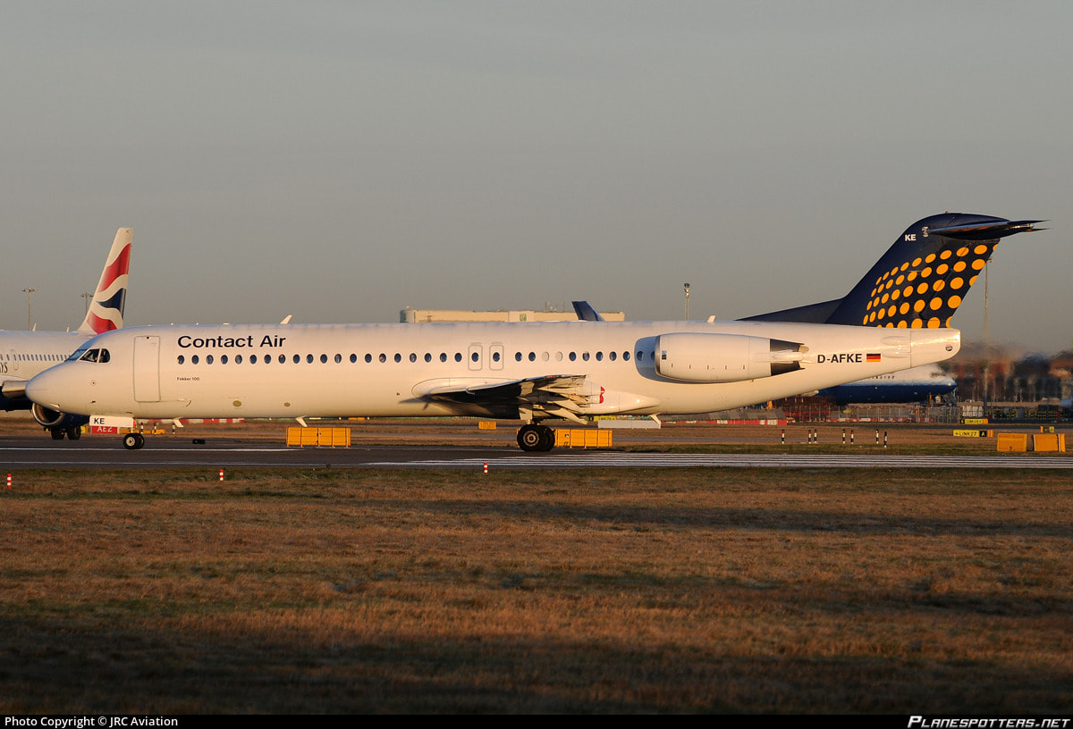 F100 (Fokker 100) (8 operated) (3 operated in the Lufthansa Regional livery with Contact Air titles, 5 in 2 slightly different Star Alliance livery’s),Awaiting takeoff clearance at LHR,