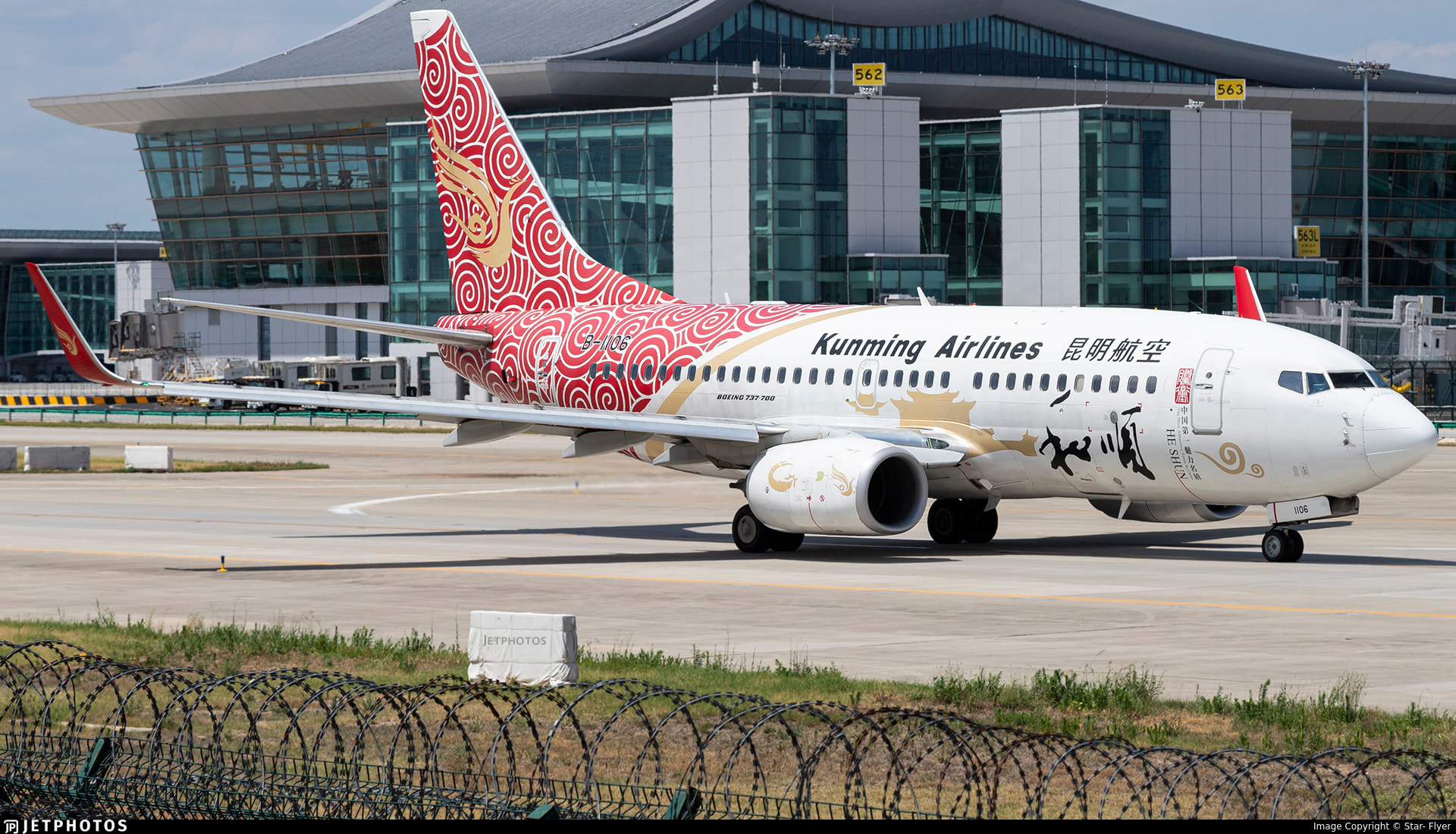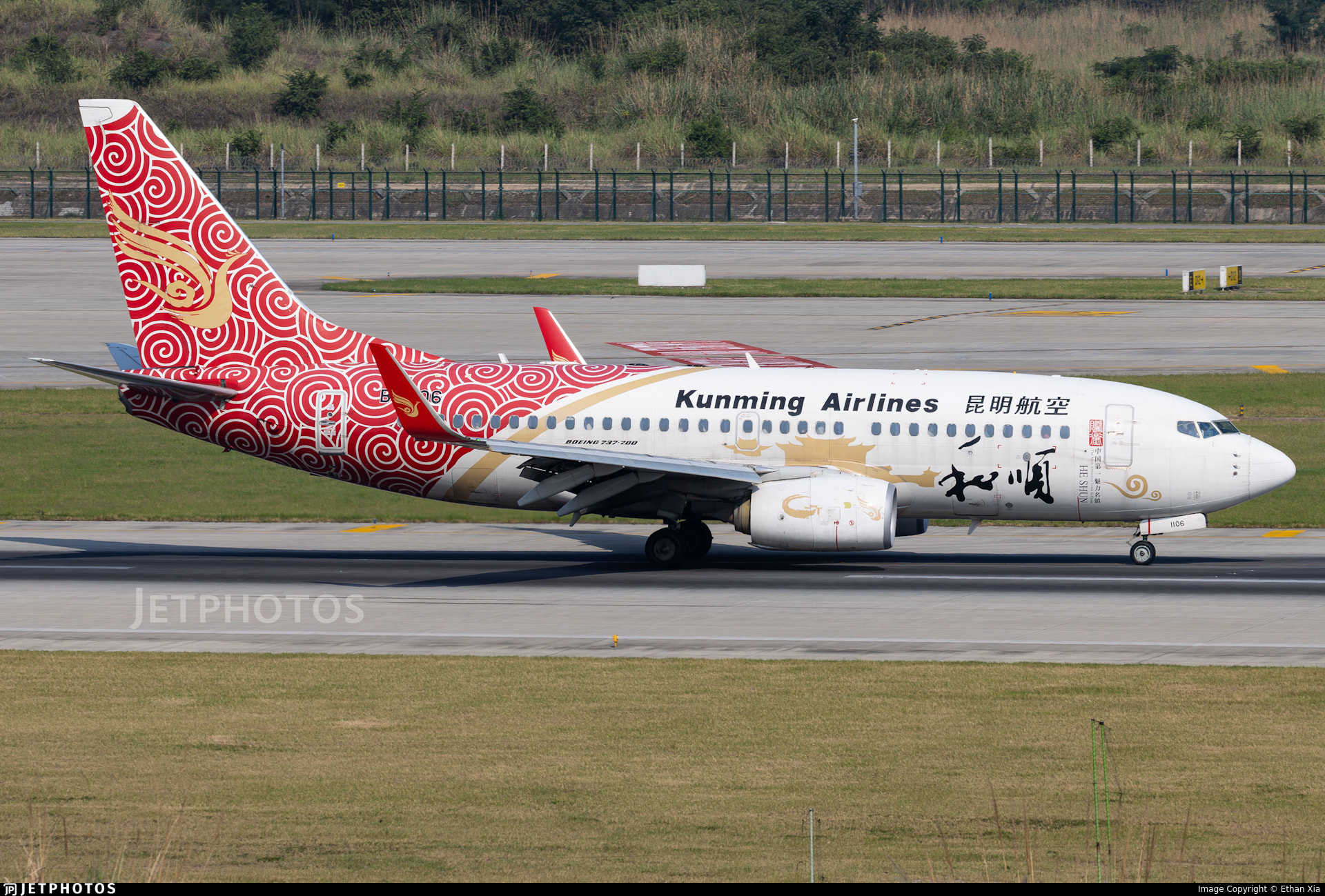 Kunming Airlines in a special ‘He Shun’ livery colorway on an Boeing 737-700.