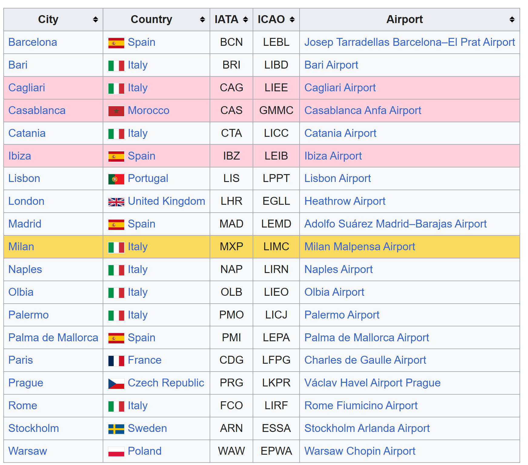 This airline should be considered in the game, as Lufthansa Italia was an Italian airline and subsidiary Lufthansa Group, which is based at Milan–Malpensa Airport that operated to destinations in Europe & Africa. In July 2011, Lufthansa reported in a press release that it would stop all Lufthansa Italia operations by 29 October 2011 as it had been proven too difficult to operate the Italian-based operations economically, with the entire fleet subsequently being transferred back to Lufthansa.