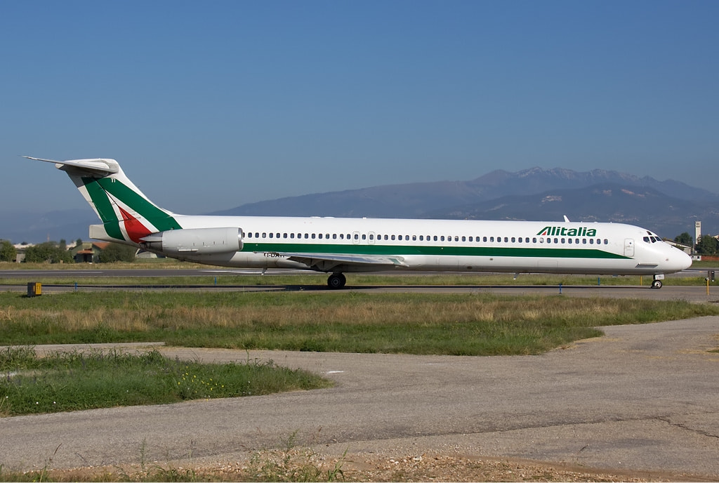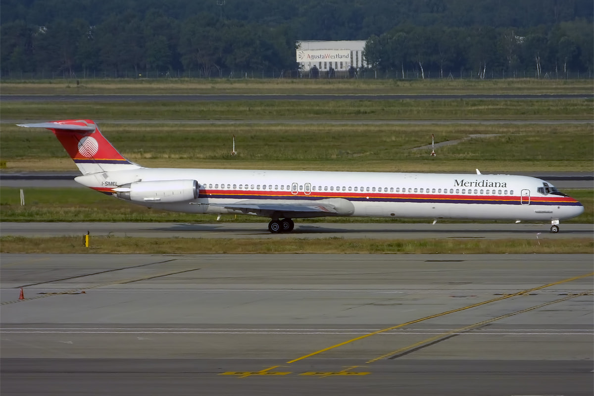 Alitalia both as regulars for BRI (Both of these were around at retirement in 2012 - the older livery, pre-2006, still being worn by the majority of the 23 MD-82’s that survived into the new Alitalia after the old one went bankrupt in Jan 2009. Original Alitalia had 90 of them),