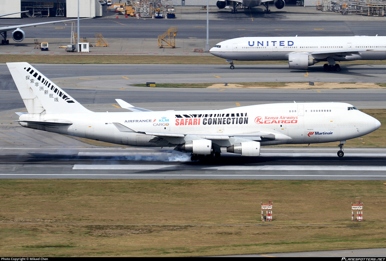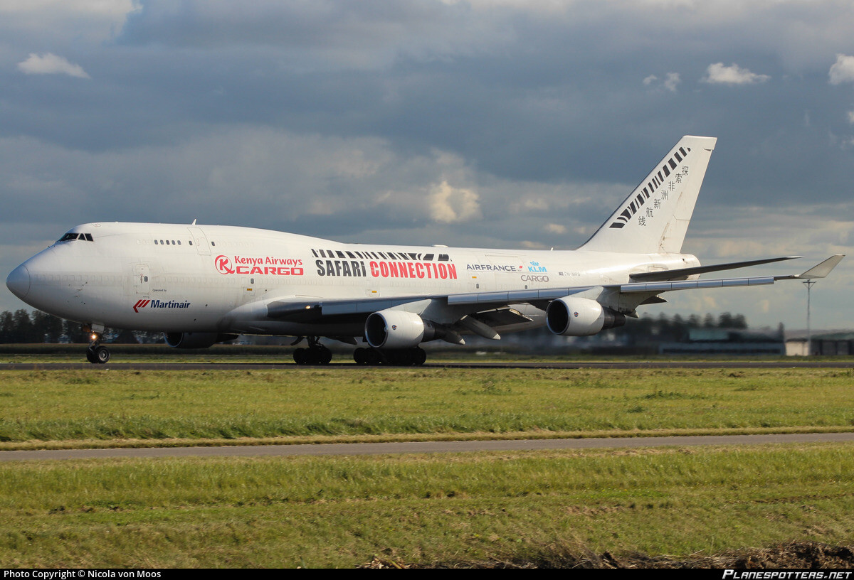 This livery should be considered in the game, as this Martinair livery features four airline logos, Air France/KLM Cargo, Martinair and Kenya Airways Cargo, which has “Safari Connection” on the center of the fuselage. It also features a tiger stripe painting and a text on it’s tail, which translates into “Exploring new routes in Africa” in Chinese characters. This livery was used for its triangular network in the Europe-China-Africa routes which starts from Amsterdam (AMS) to Guangzhou (CAN), then a layover in Sharjah (SHJ) and then finally destinations in Africa which include Nairobi (NBO) & Lagos (LOS).