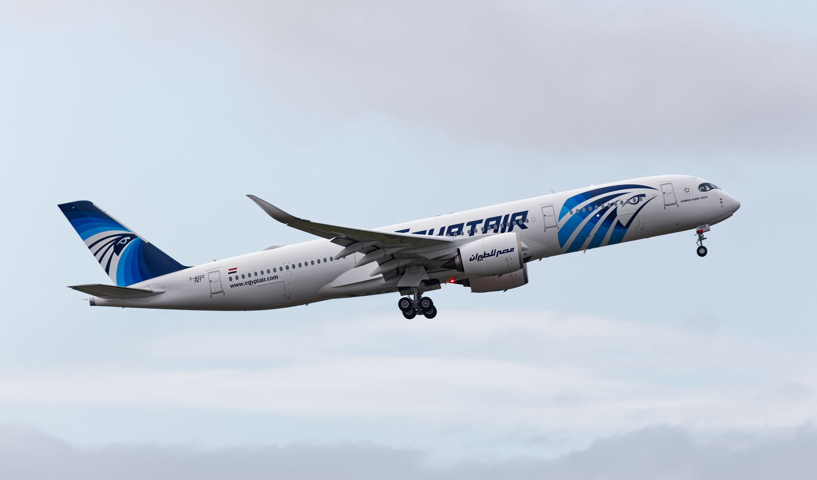 The Egyptian flag is located near the tail, along with the company’s website address.
