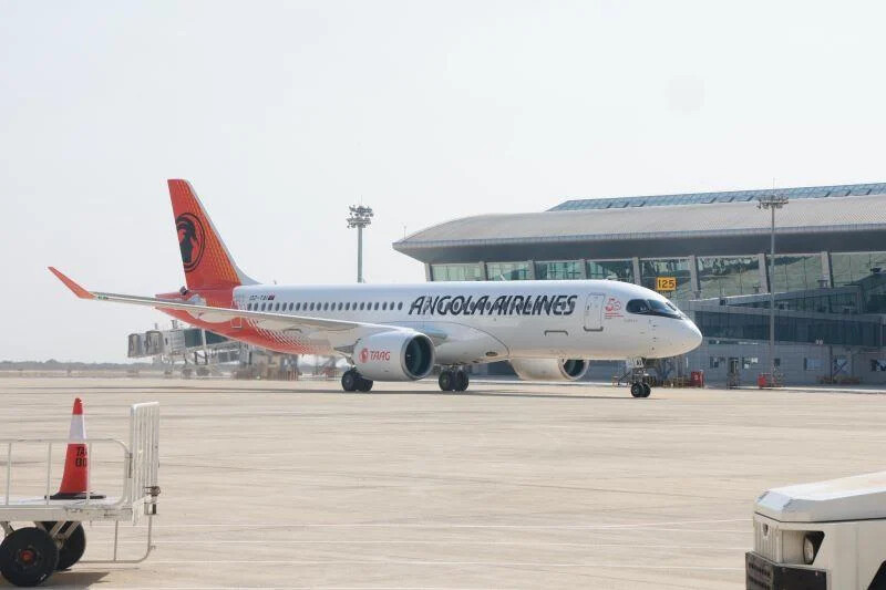 Regular service to Luanda (Old Airport): Air France, ASKY, Emirates, Ethiopian Airlines, Fly Angola, Kenya Airways, Lufthansa, Qatar Airways, Royal Air Maroc, TAP Air Portugal, and Turkish Airlines