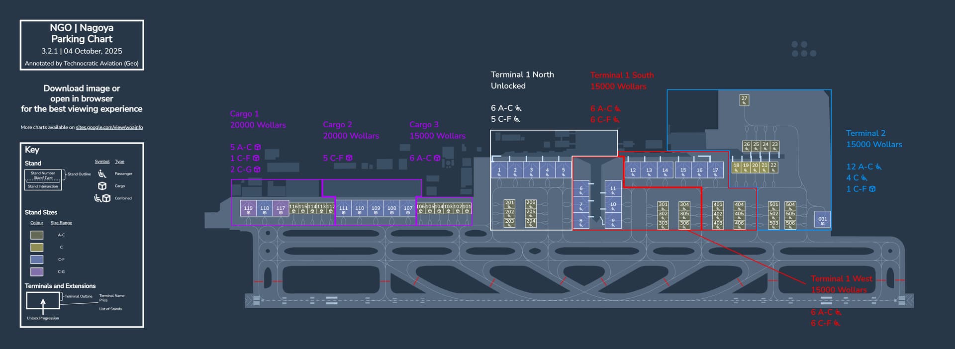 Here are the full airport overviews, with and without purchasable stands. These were created by Geo and are up to date as of 05/11/25.