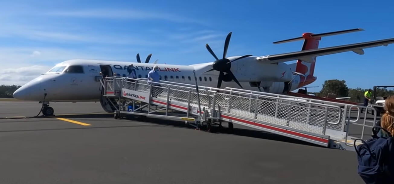 The Dash 8 Q400 is graced with a multitude of different ways to get its passengers on and off the aircraft. It has its own stairs on both the front and rear doors which have been used in the past especially by airlines such as FlyBe. There are also ramps which can substitute the rather silly looking ambulifts, as well as jetways being used for the aircraft.