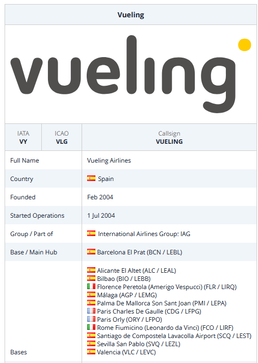 Vueling (Missing Alicante, Bilbao, Florence, Palma, Santiago de Compostela an IRL route to LHR and Seville),