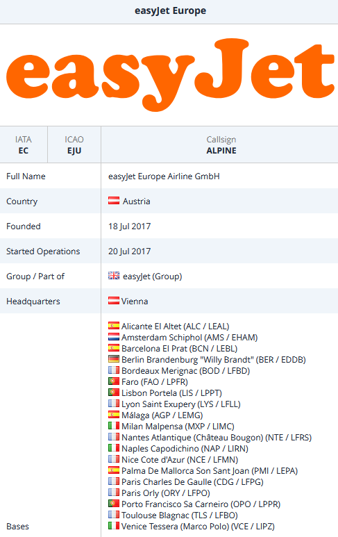 Another oddity is regarding easyJet Europe which is based at Vienna, yet has no easyJet base, though it would be nice to also see the airline here.