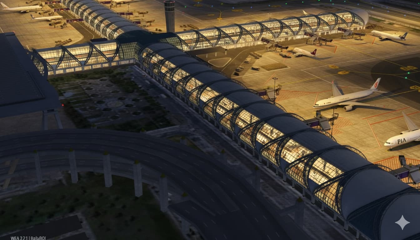 Realistic terminal glass, adding lights to the terminal at night.Make the night in the game The airport has vitality.