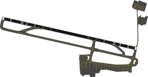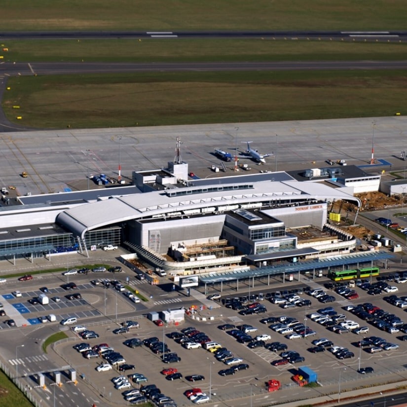 Example: Approx. 7 km west of the center of Poznań, 2500 m x 45 m, runway lighting, ILS system, approx. 2500 m (8215 ft) and two passenger terminals,