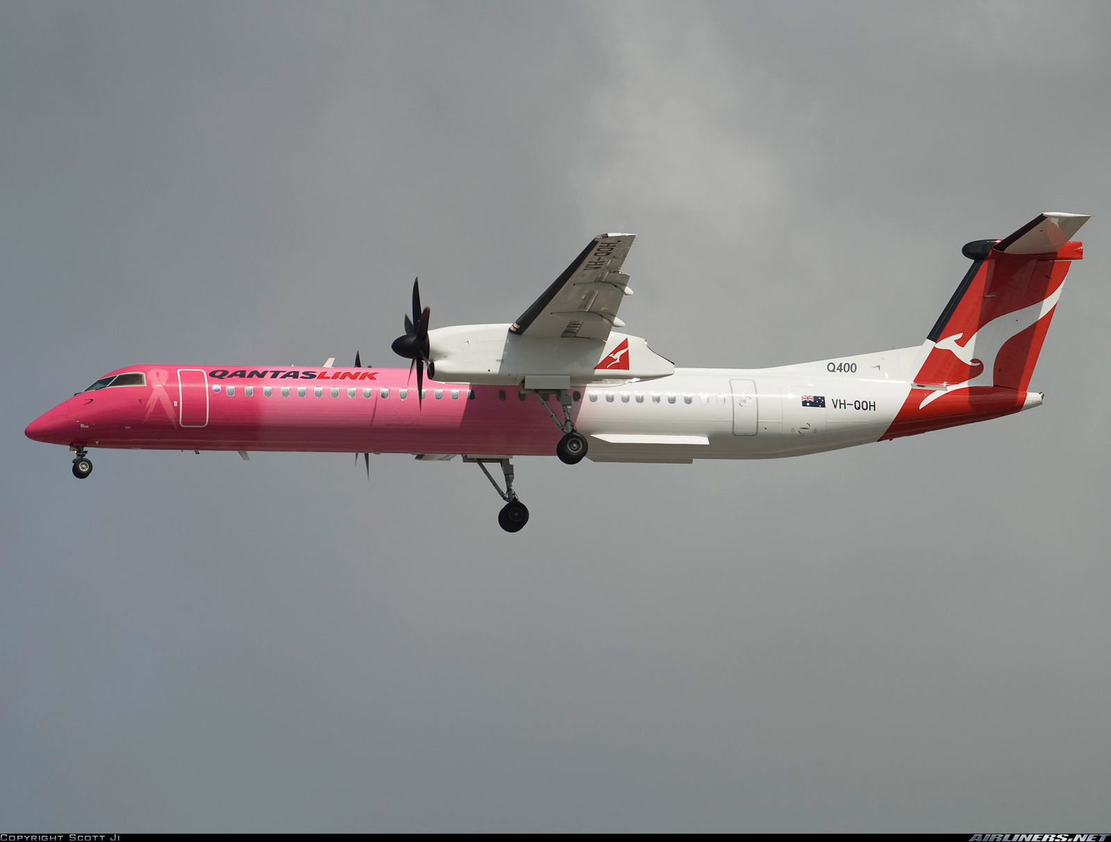 Dash 8 Q400 (VH-QOH) - Qantaslink - National Breast Cancer Foundation livery.