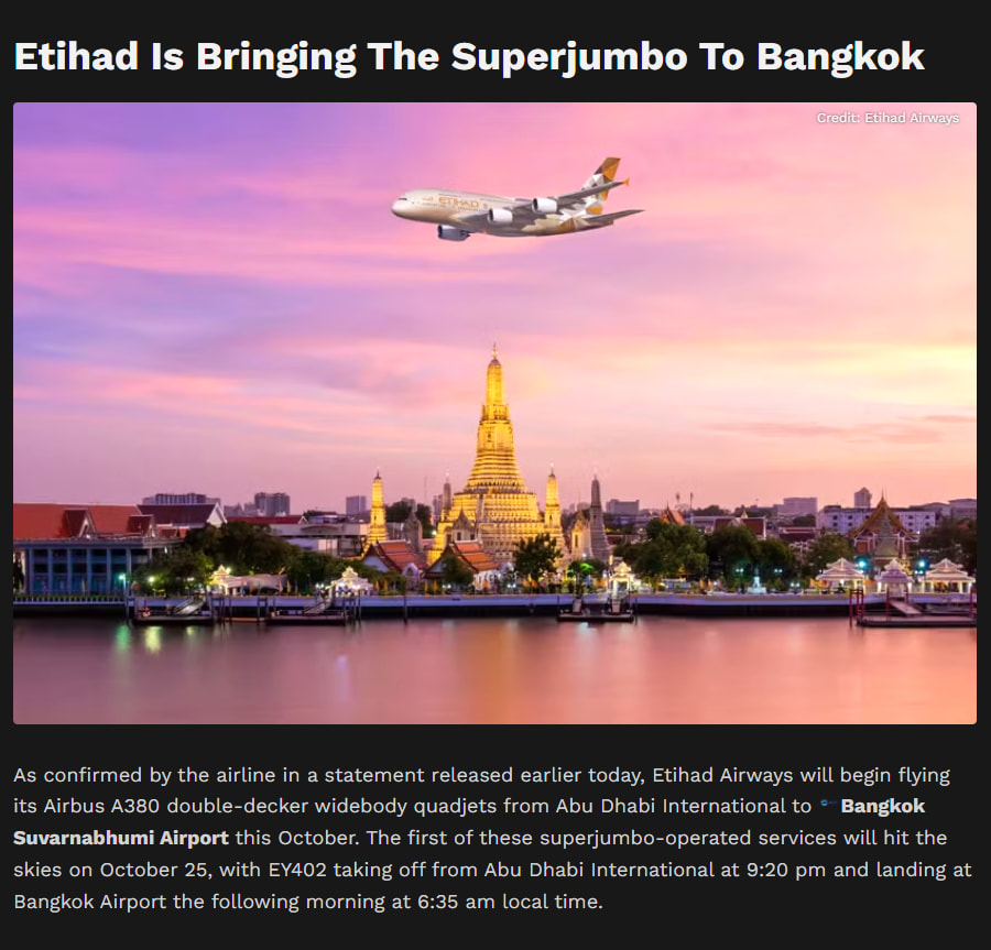 Etihad A380 to BKK confirmed for October 2026