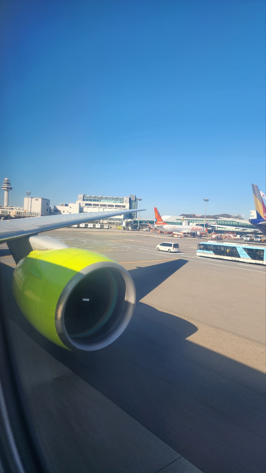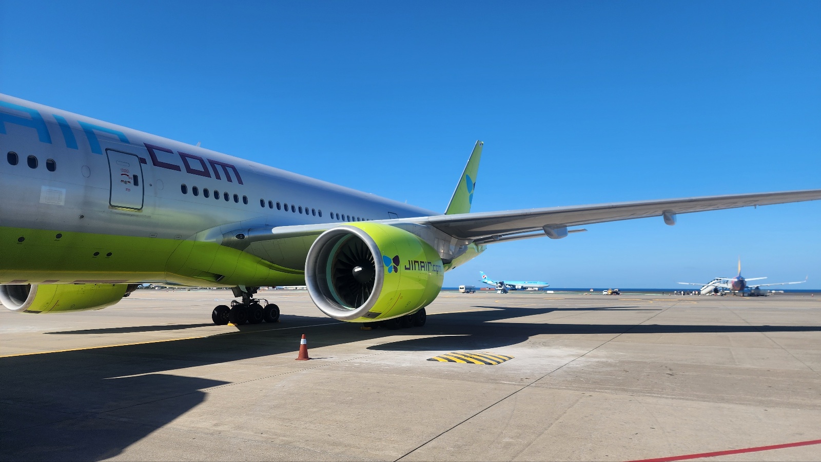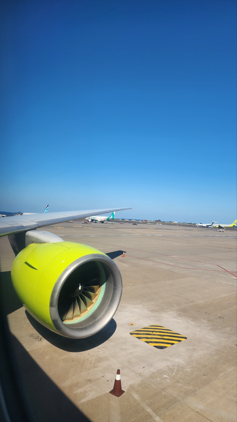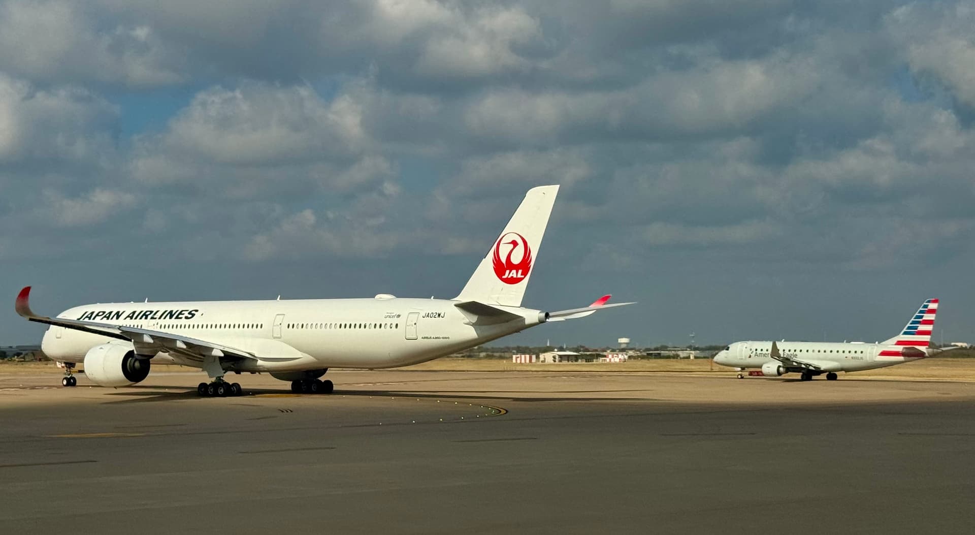 And to my delight, a Japan Airlines A350 taking off directly ahead of us! Just look at its size compared to the little E-Jet!
