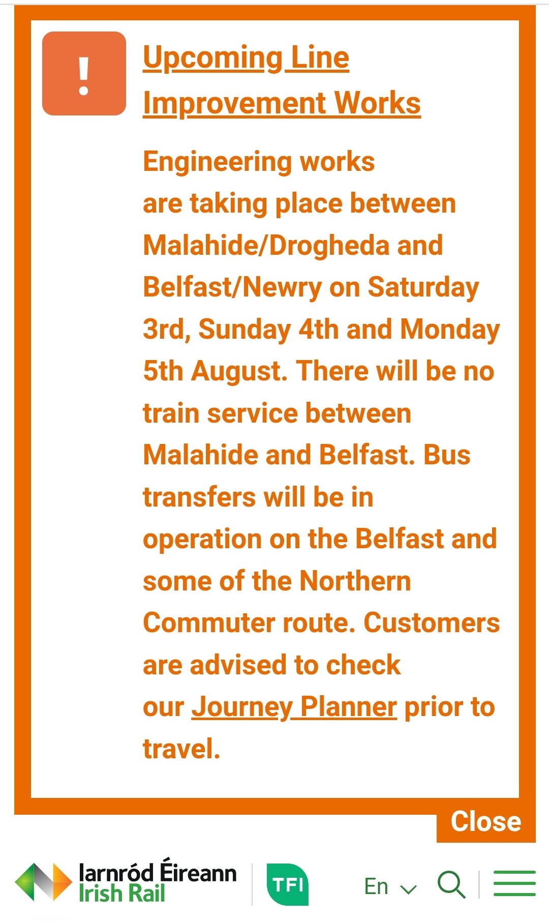 So I came back from the train station to get on my 9:00AM train to Bray via Dublin for the Bray airshow and now I got a massive problem, cause on that day there is maintenance on the track for 2 days and as far as I know my 9:00 train got cancelled.