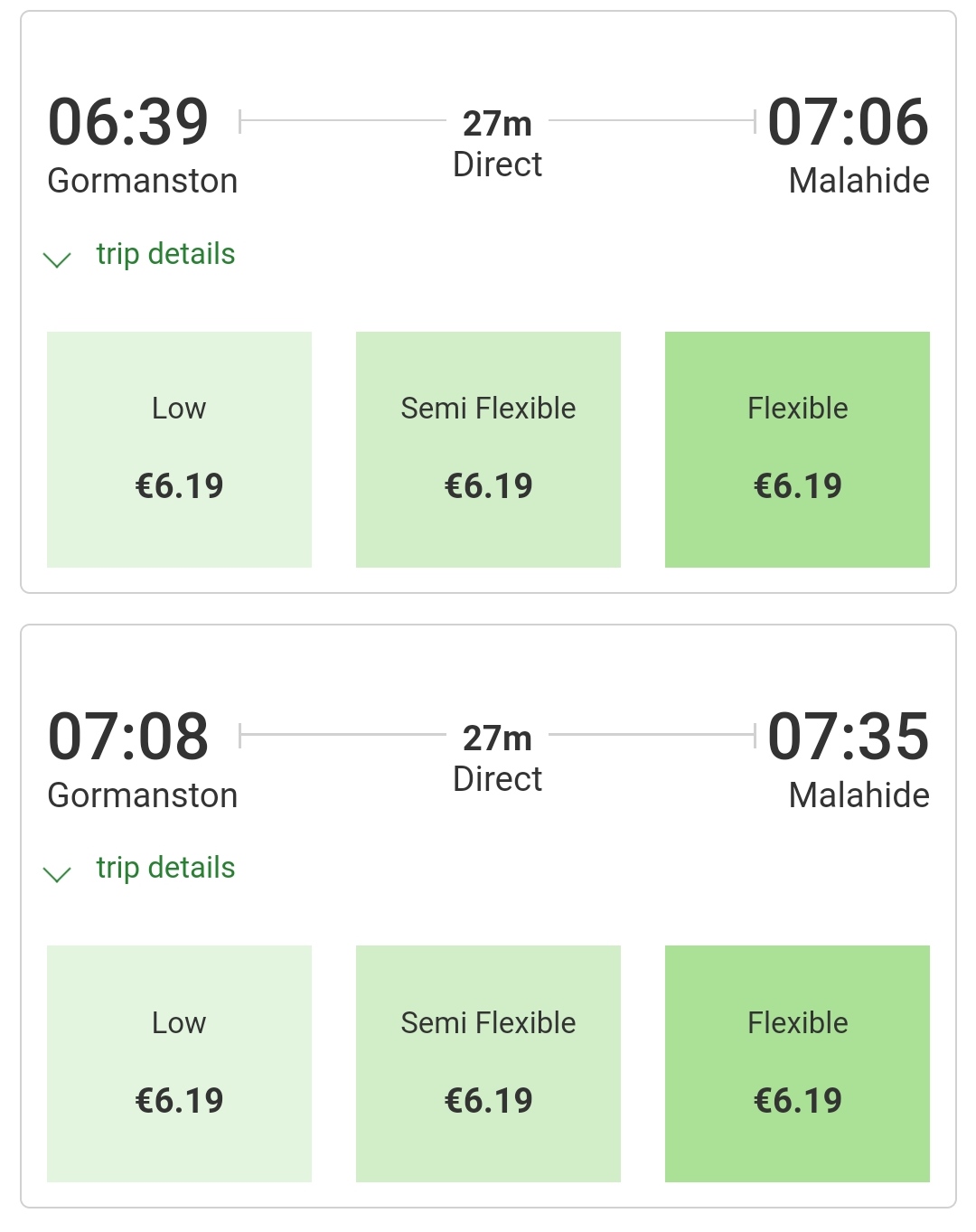 Strangely enough all 3 fares are priced exactly the same since it was here’s one for example