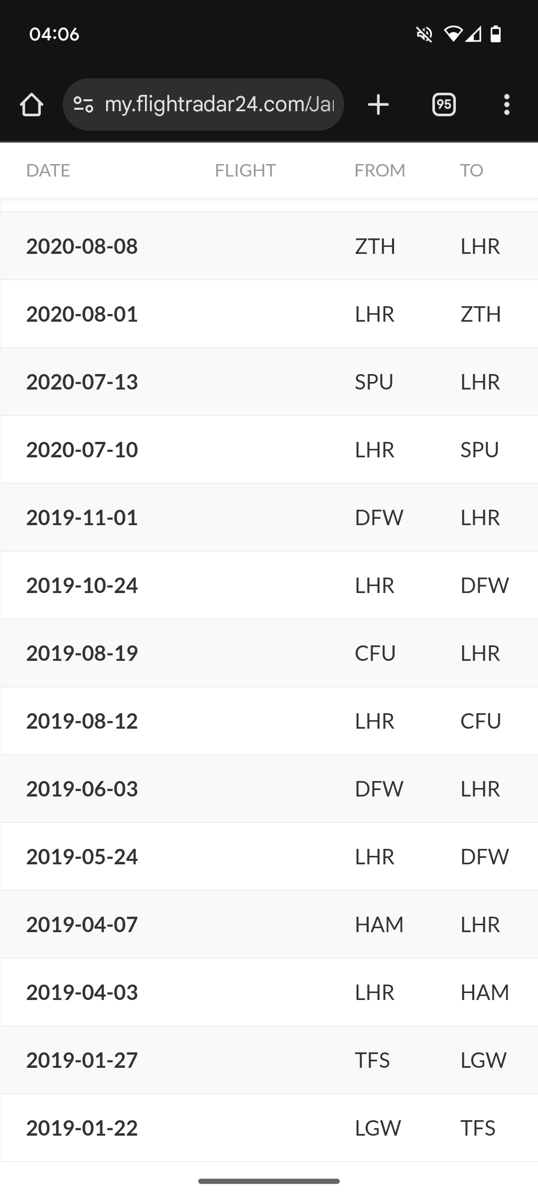 I mean this is pretty much what all of mine looks like⌠(For some reason my phone doesnât show the aircraft type and reason)