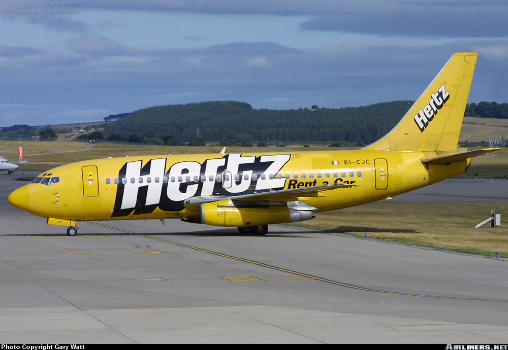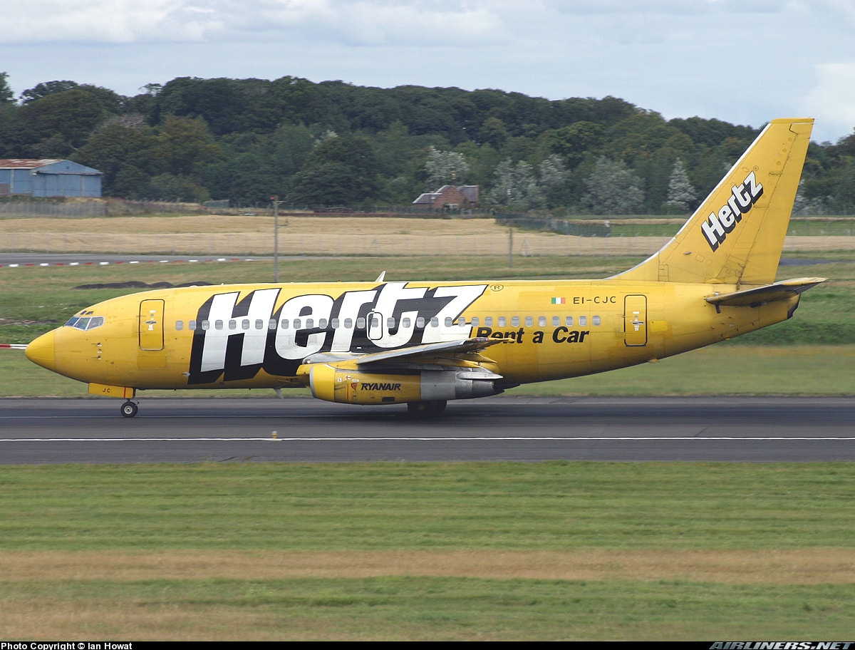 Ryanair in the yellow Hertz livery colorway on a Boeing 737-200.